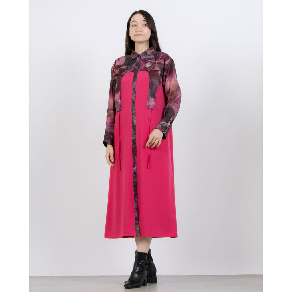 ◇カサネ CASANE マーブルペイント イレギュラーヘムワンピース