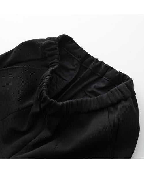 表面はリブ、裏面はフラットな無地のダブルフェイス組織です。タンブラー加工で柔らかく仕上げ、適度なハリ感もあります。ピリング耐性も良く、長く着用いただける素材になっています。ウエストはオールゴム仕様でお手入れも簡単。裾にスリットを入れることで脚長効果と足元に程よい抜け感を出しています。