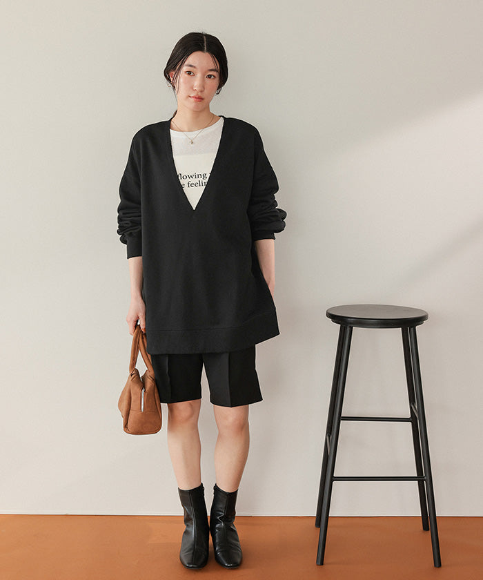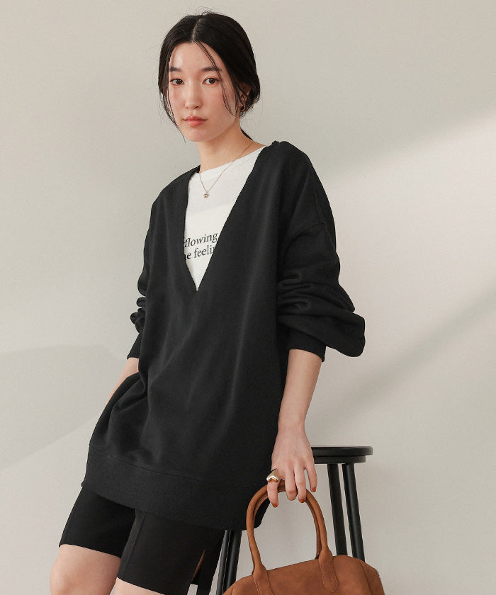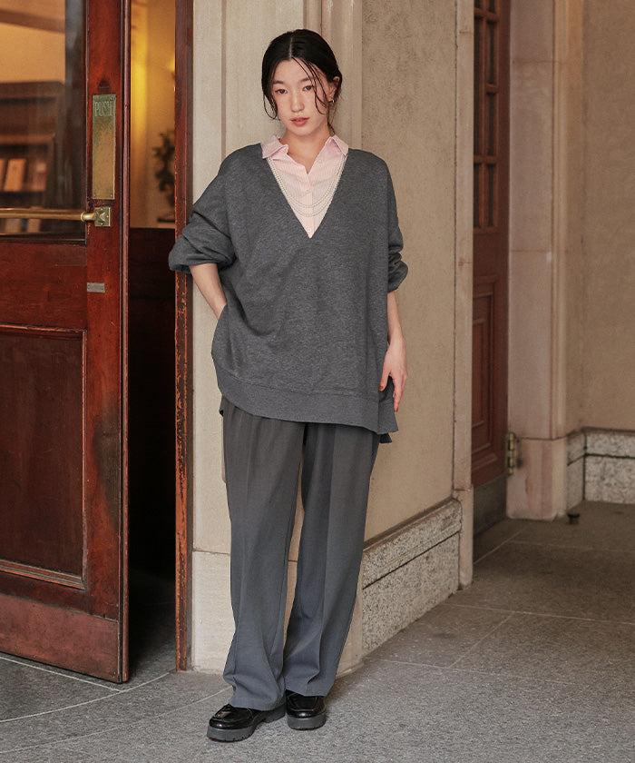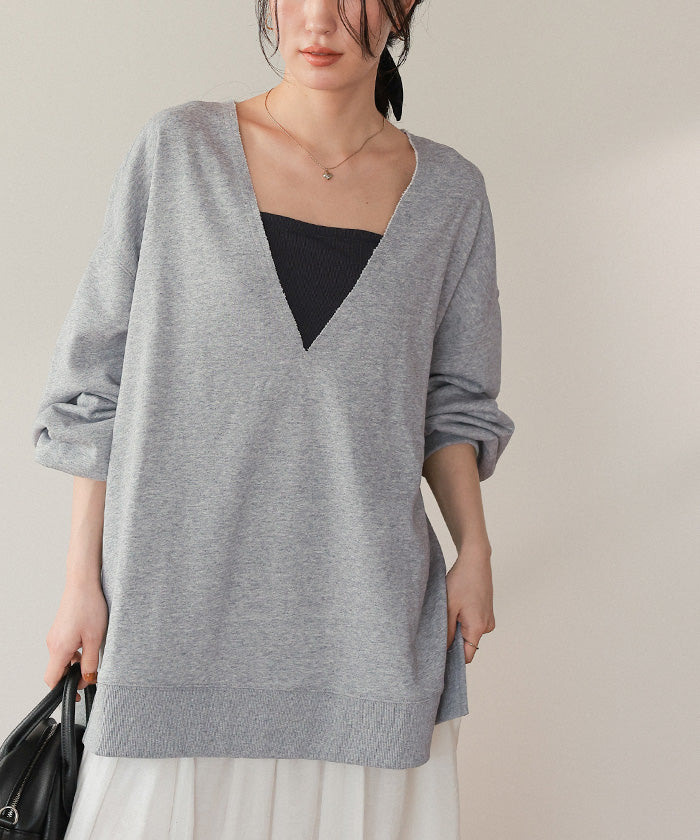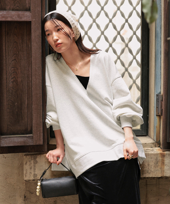 ティティベイト titivate 深Vネックサイドスリットスウェットプルオーバー