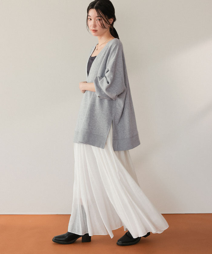 ・サイドスリット入りで抜け感もあり、パンツはもちろんスカートも合わせやすいデザイン
