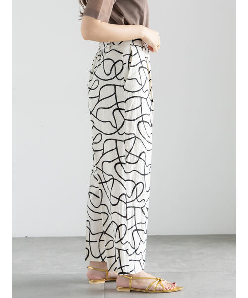リネン特有のフシがある表面感が夏らしく、またさらっとした触り心地が魅力のワイドパンツです。タックとセンタープレスを施すことで、きちんと感のある印象を演出。ゆとりのあるストレートシルエットが穿き心地の良さと綺麗見えを両立します。今年らしいアート柄と無地のアソート展開です。