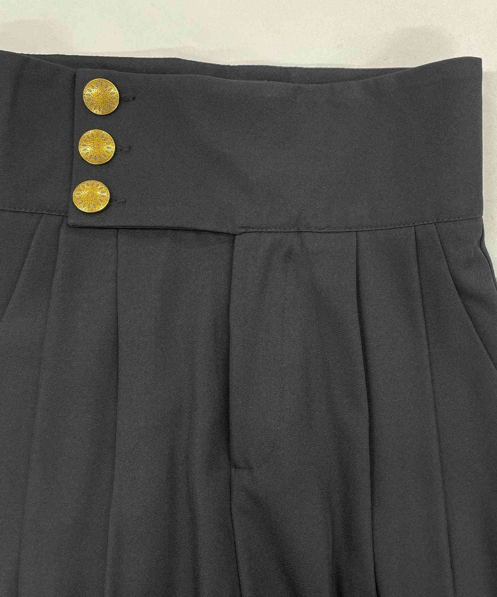 | 実寸 | S : ウエスト:64cm, ヒップ:90cm, 股上:45cm, 股下:64cm, 総丈:105cm L : ウエスト:72cm, ヒップ:94cm, 股上:47cm, 股下:65cm, 総丈:106cm |