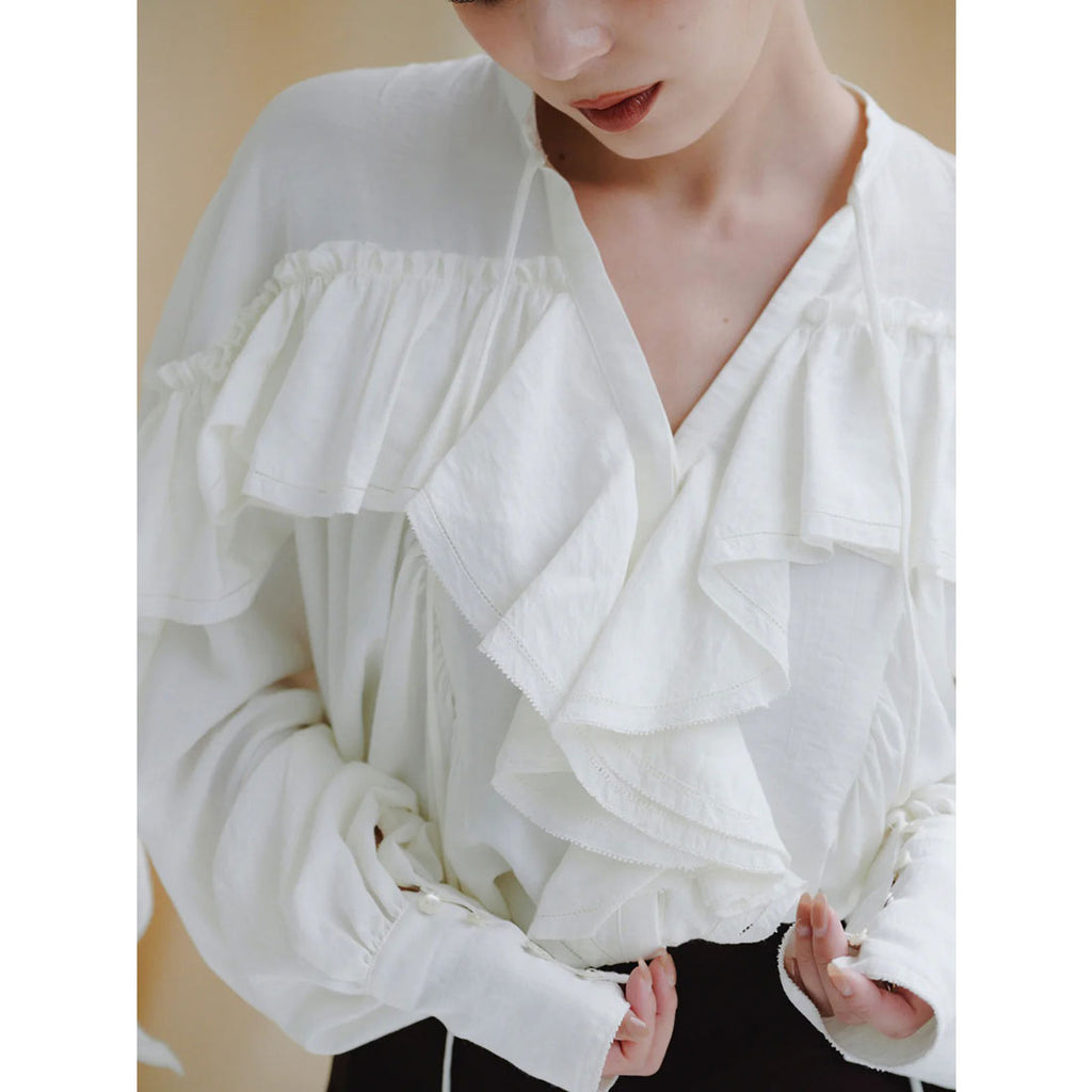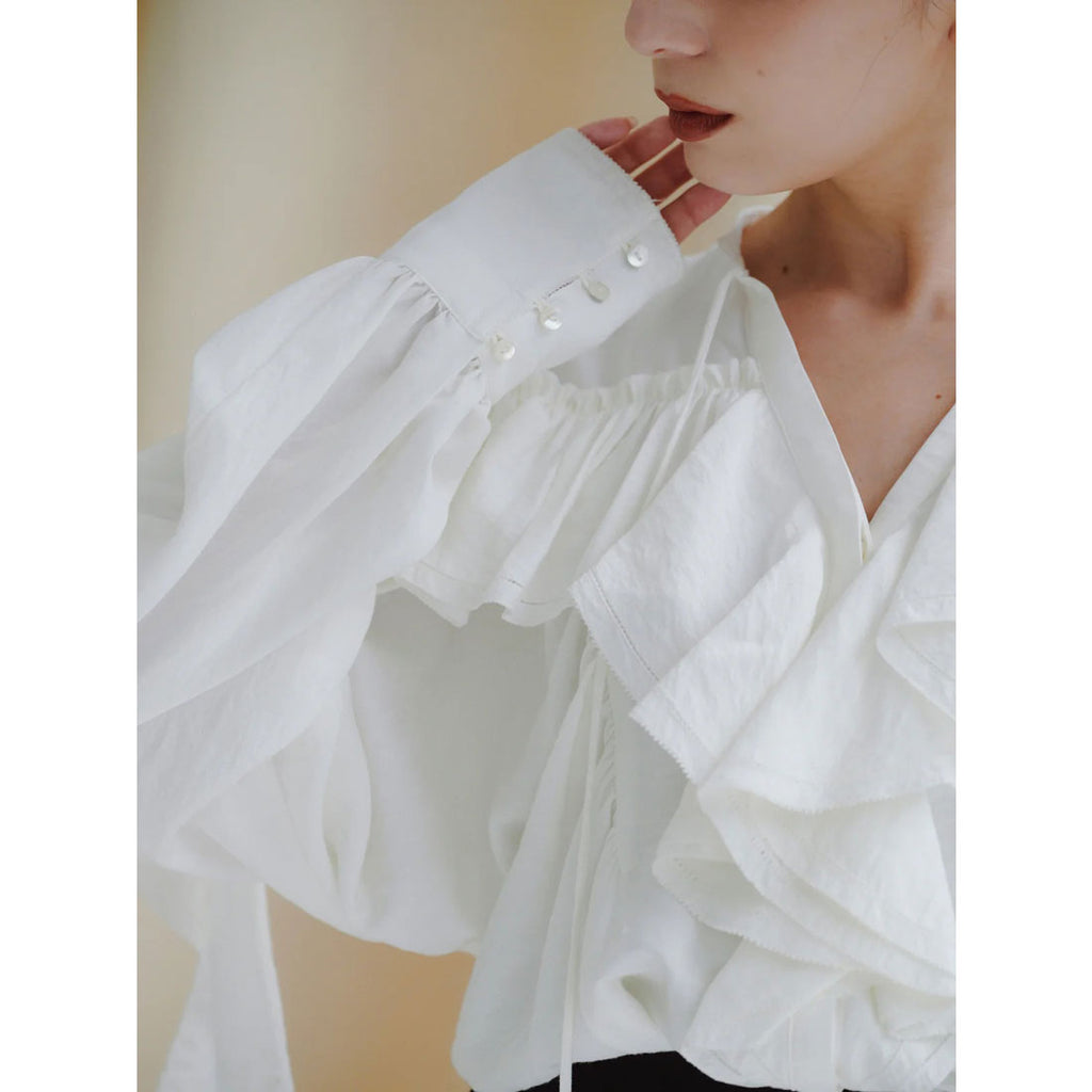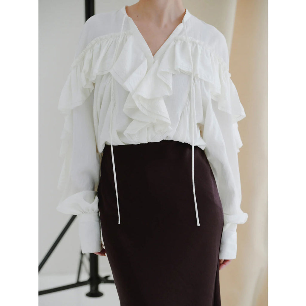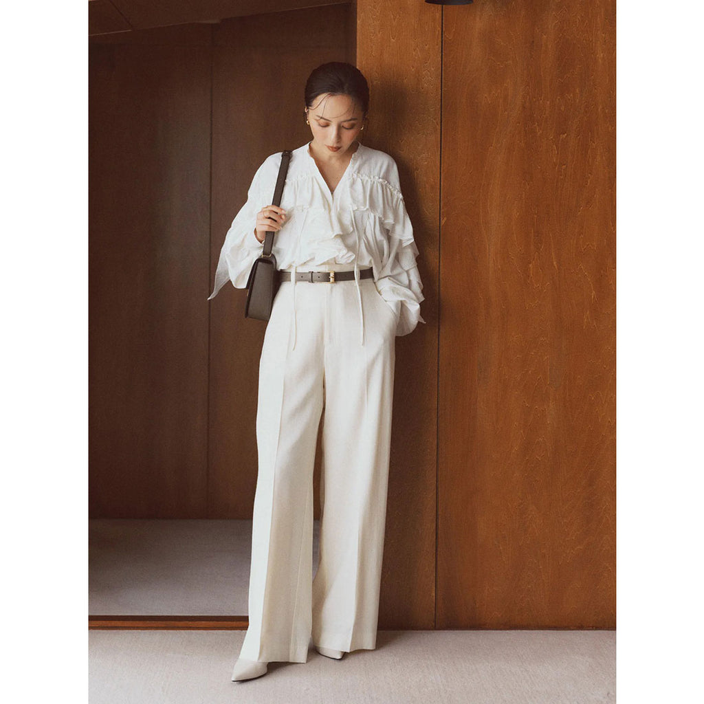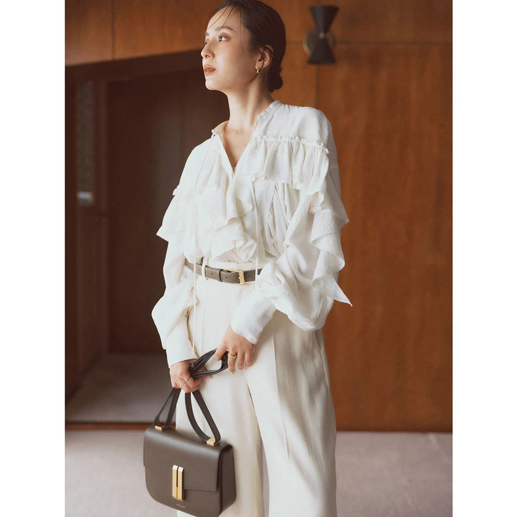 甘さとラフさの絶妙なバランスで、思わず手に取りたくなるクラシカルなラッフルブラウス。