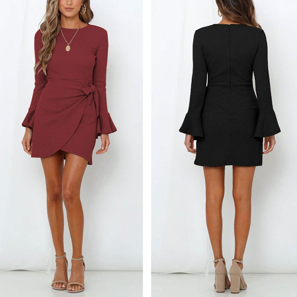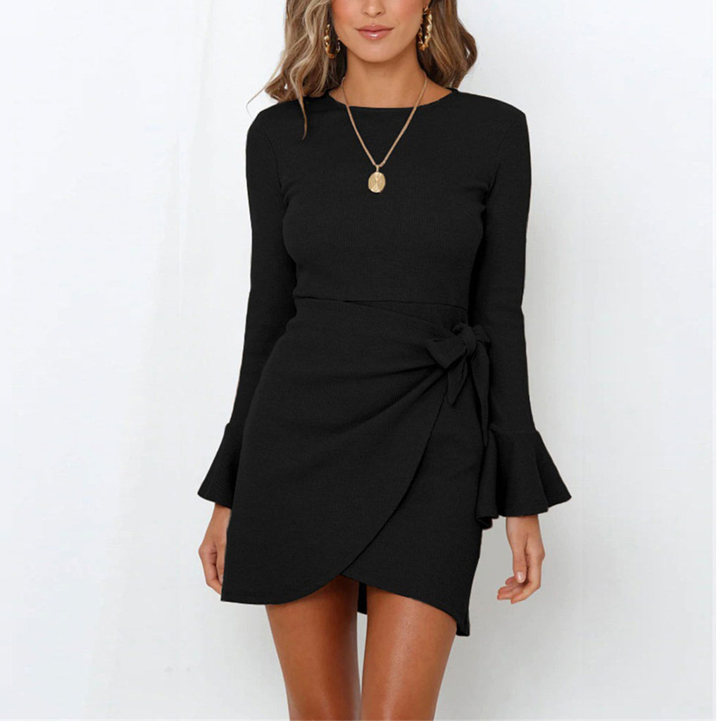 スリムワンピース黒 ショート丈ワンピ クルーネック可愛い