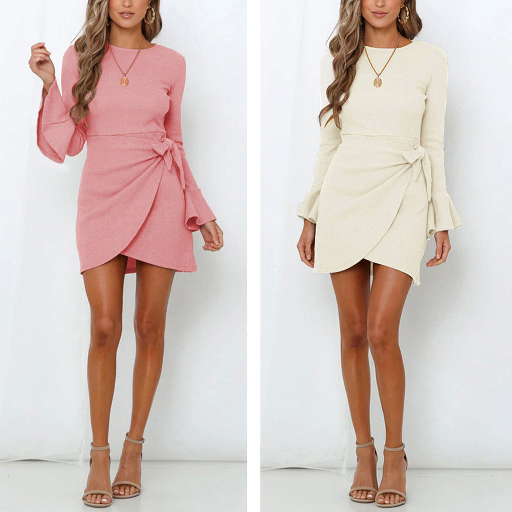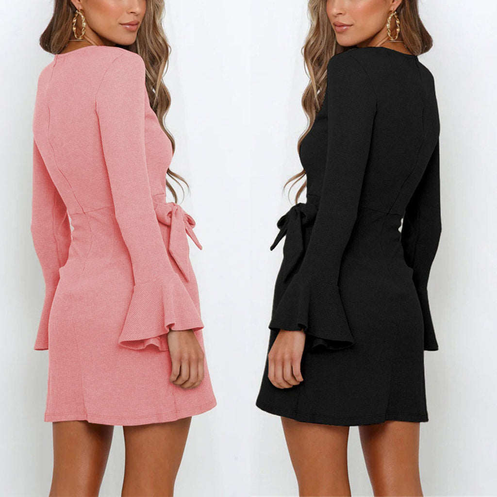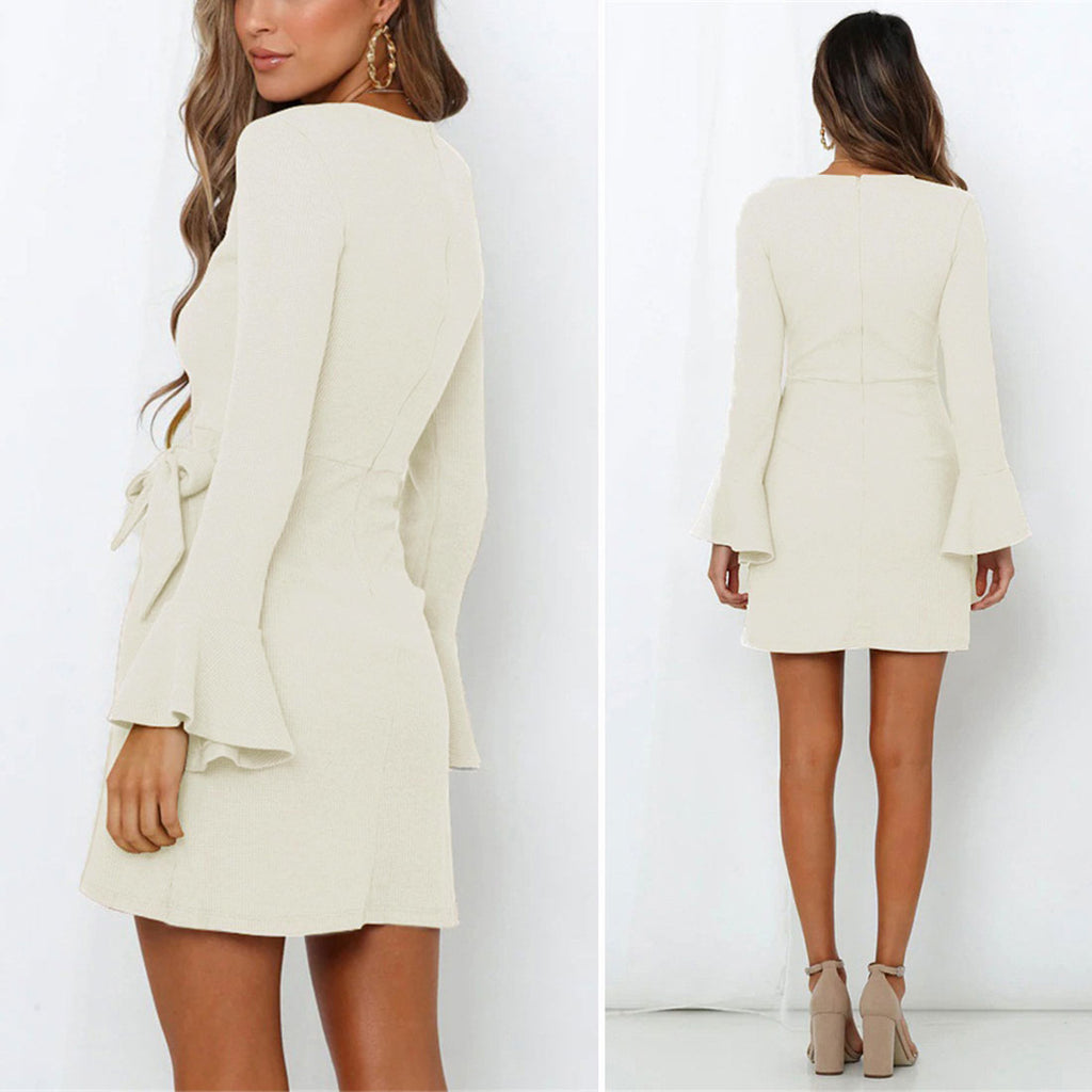 リボン、ミニ丈と可愛いが詰まったフレア袖ミニワンピース