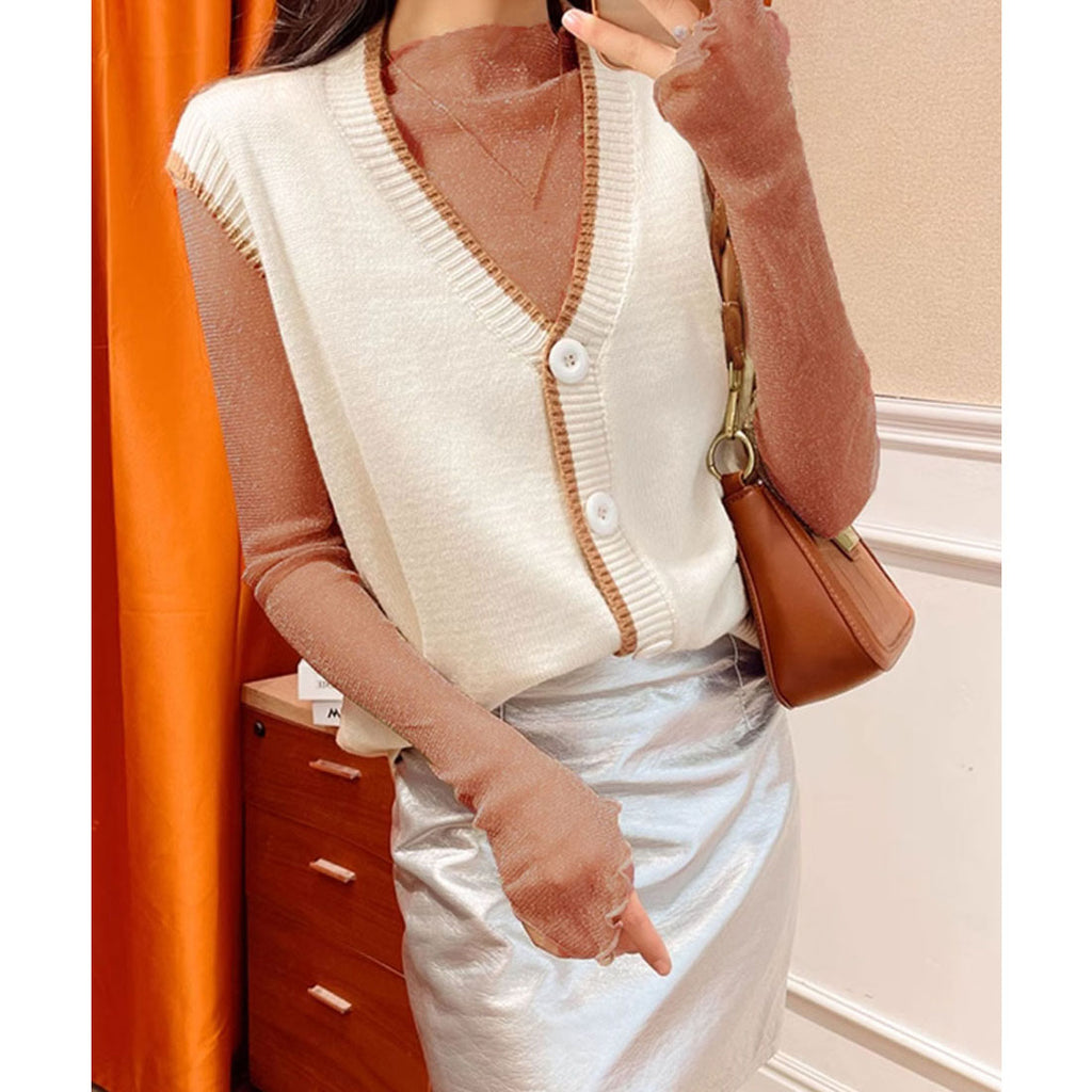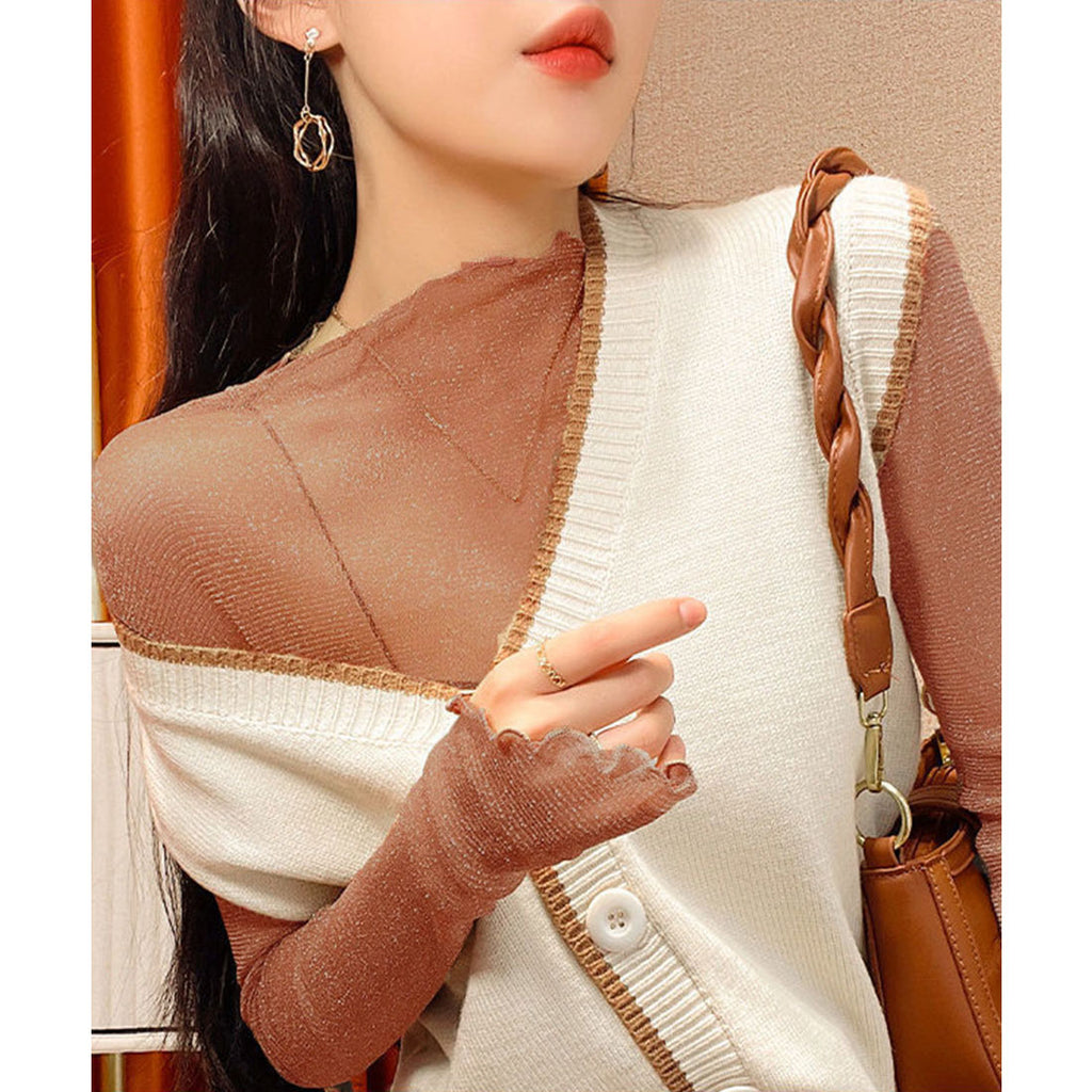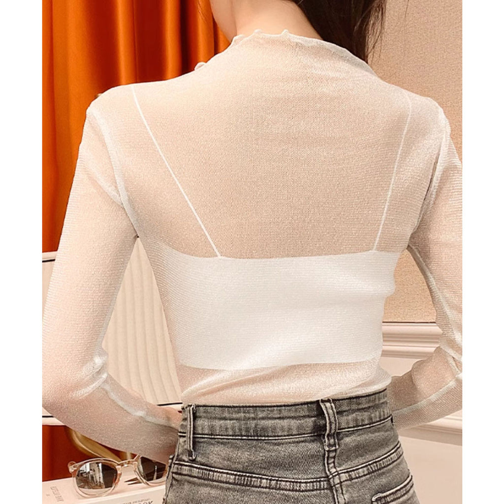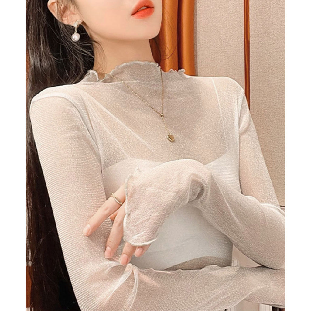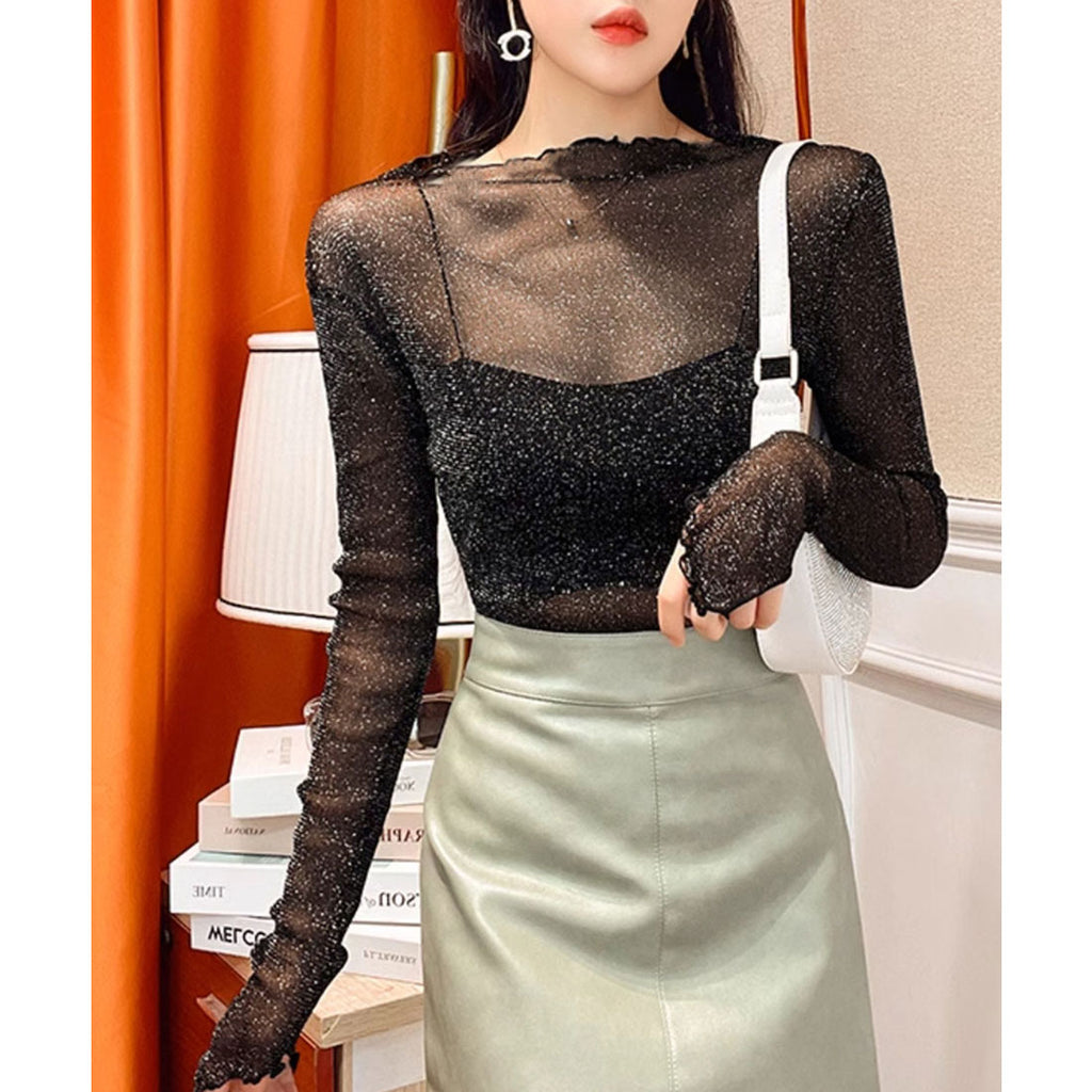 薄手韓国風トップス 肌見せ インナー黒 シースルーブラウス