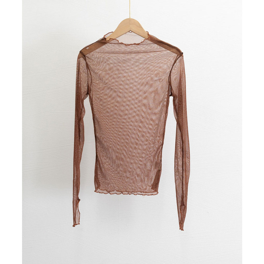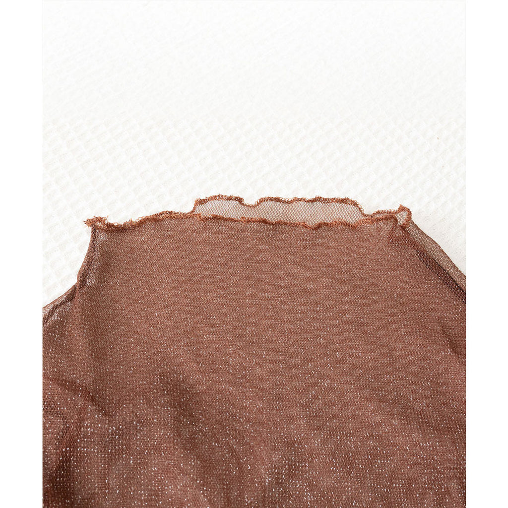 レディース メロウフリル シアートップス 重ね着 大人可愛い インナートップス 透け感きれいめメッシュカットソー 着やせ