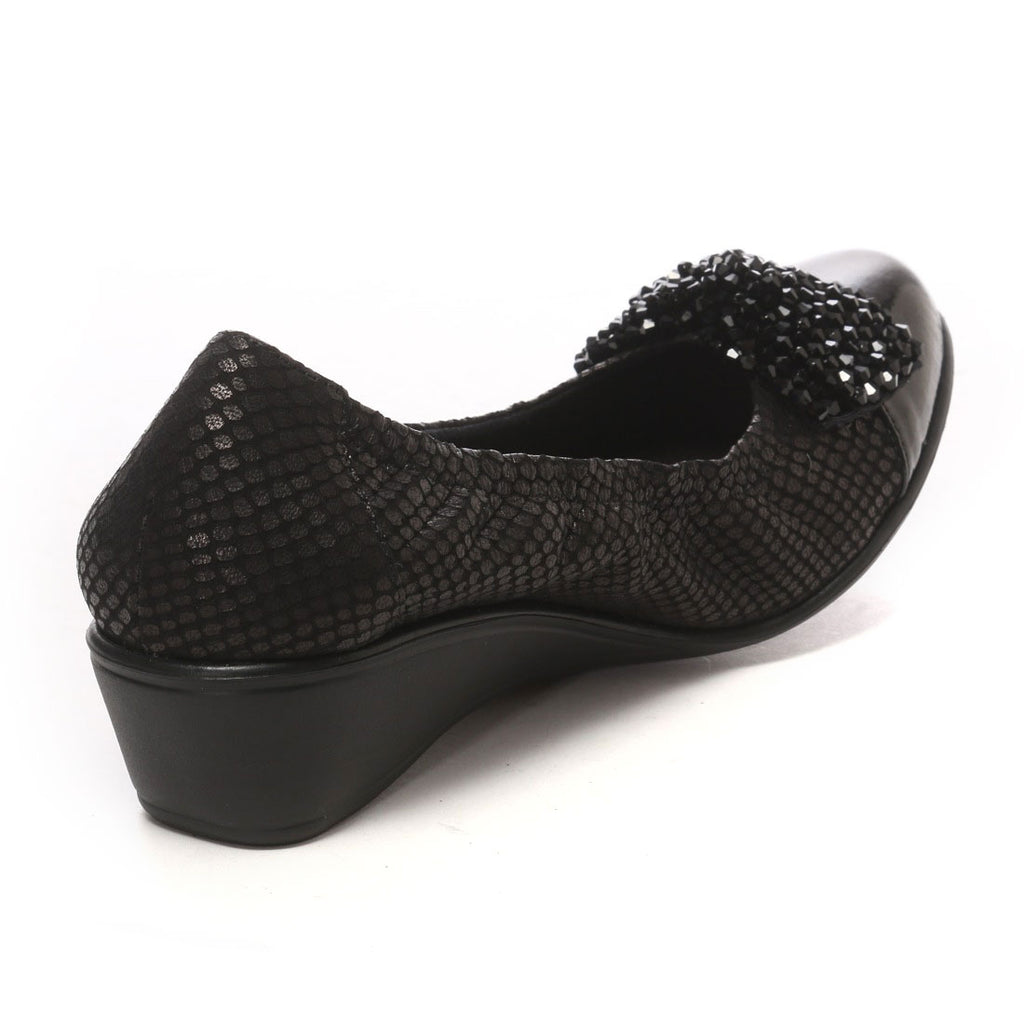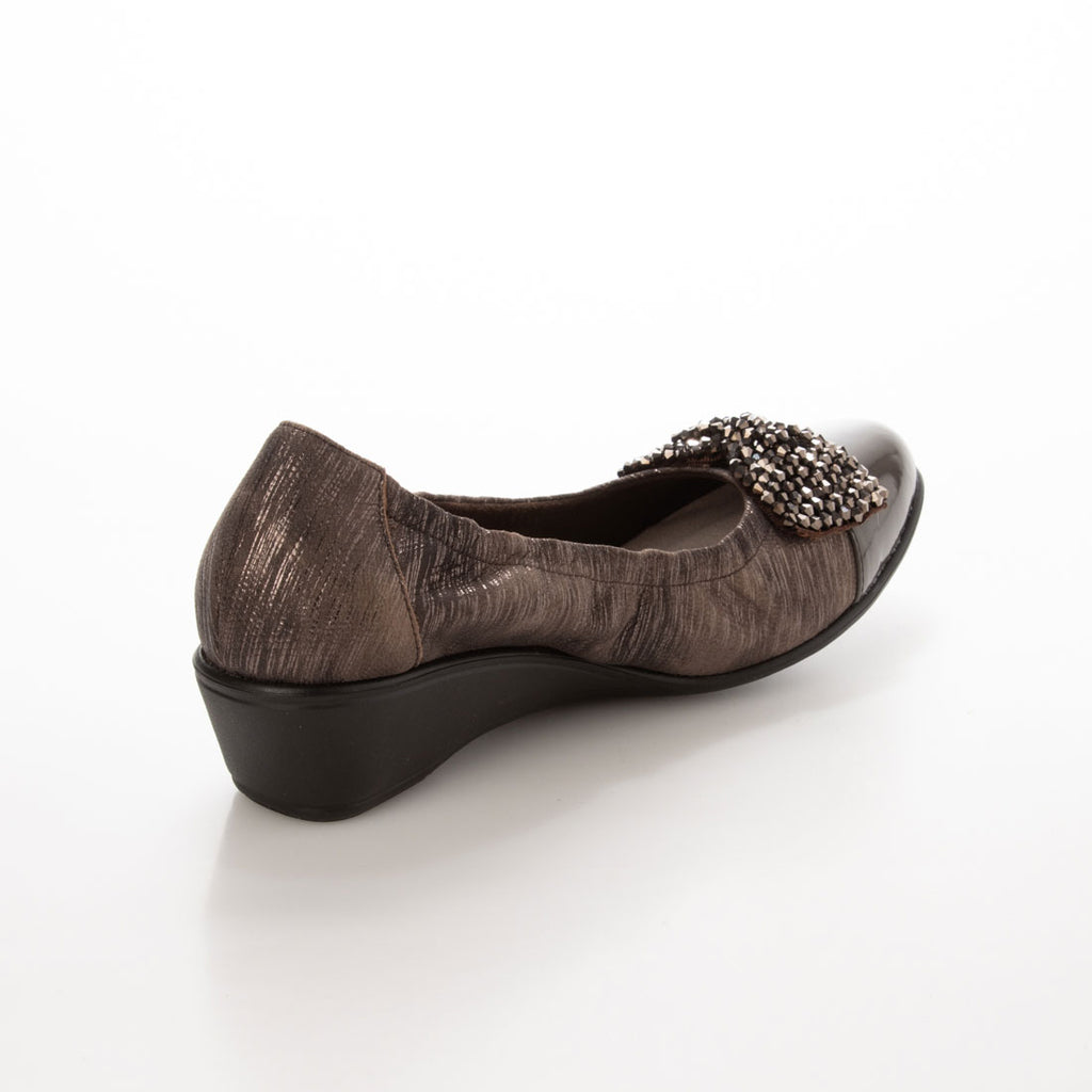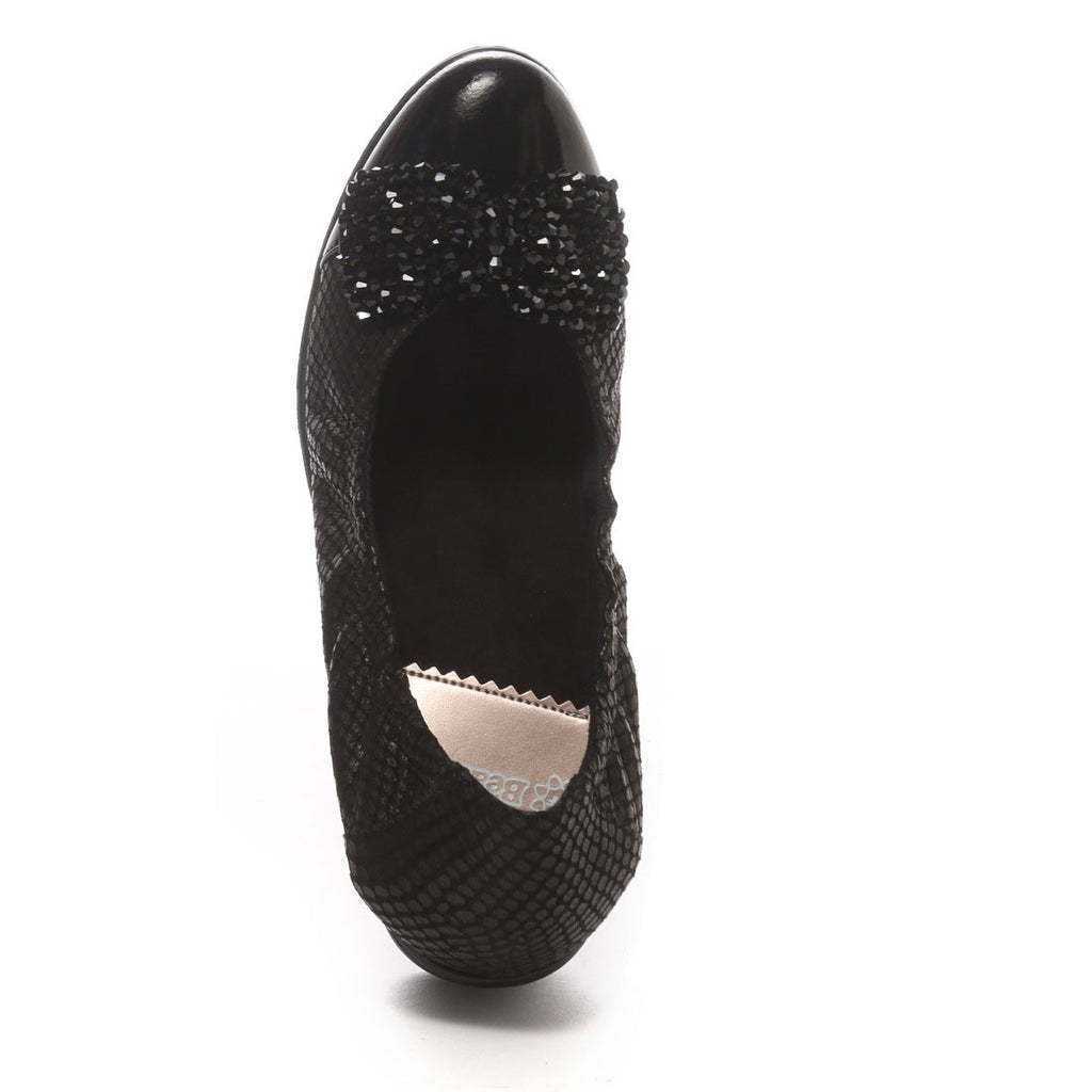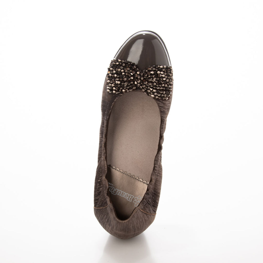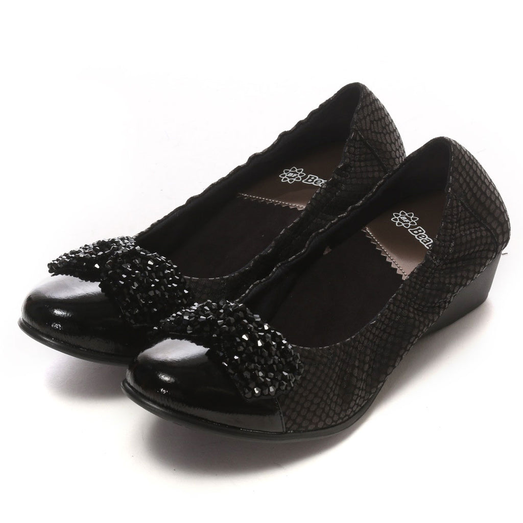 ◇キラキラで華やかなリボンビジューがアクセントになっているBeauFort(ビューフォート)の軽量ビジュウ付シューズ。