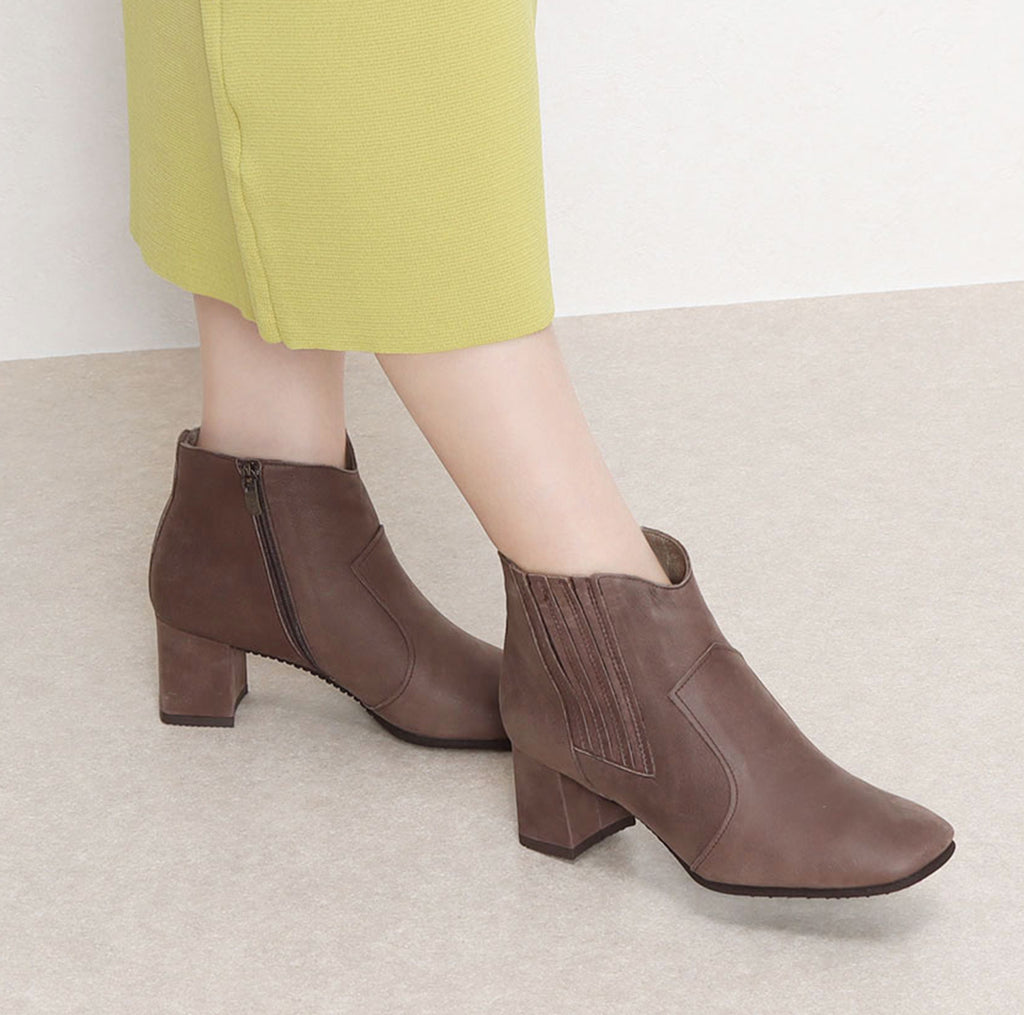 ソフトスクエアトゥのシンプルなショートブーツ。