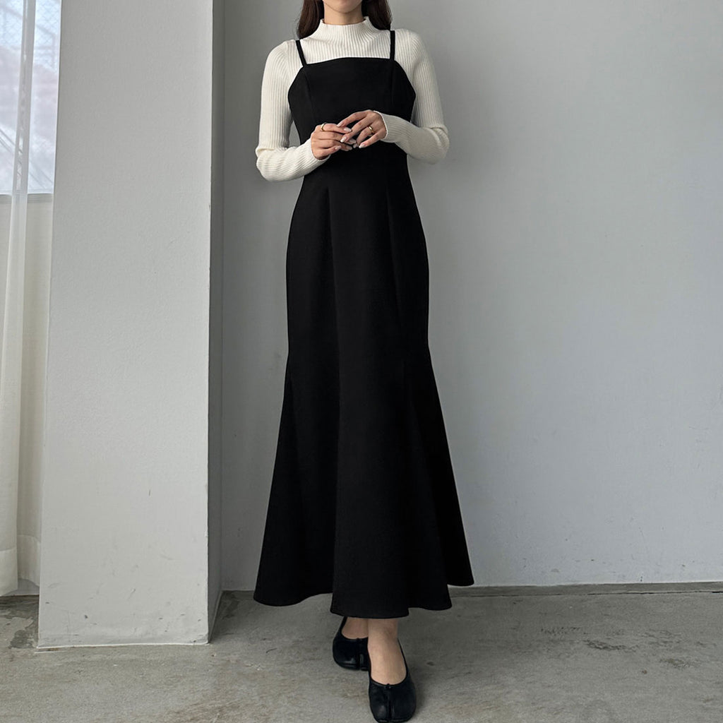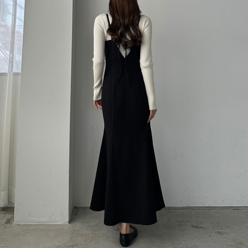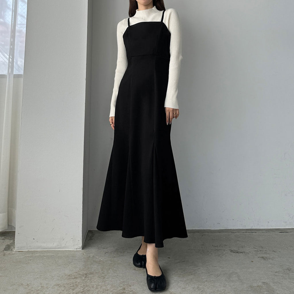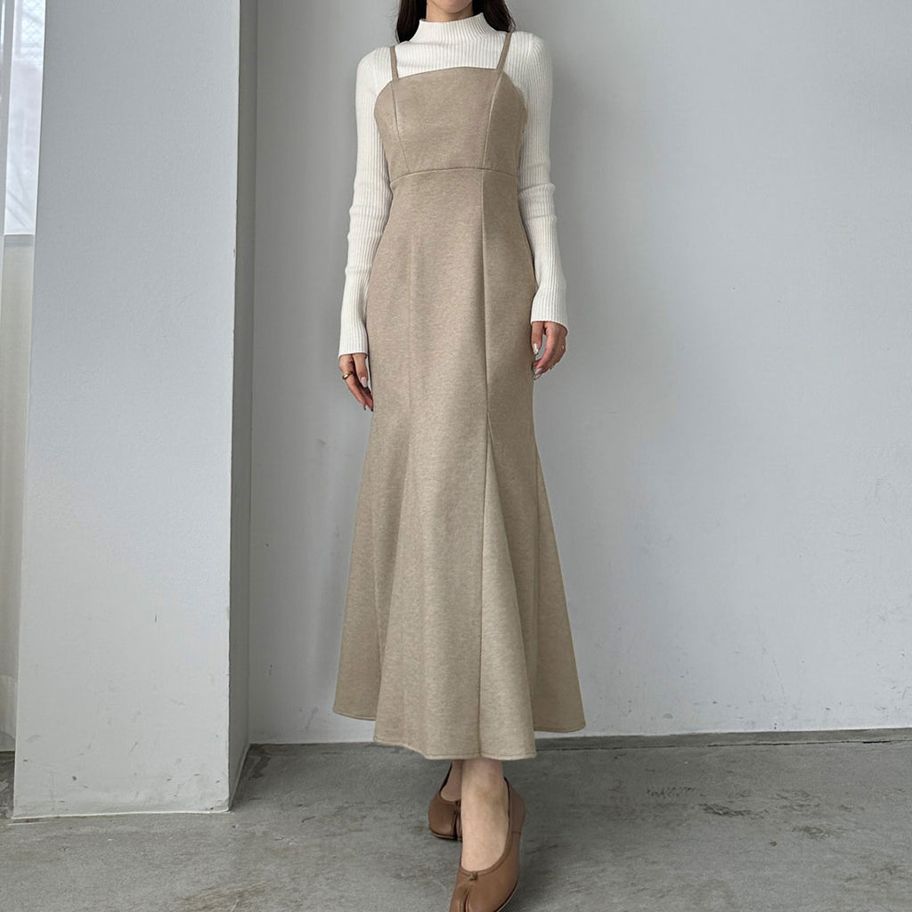 大人可愛くキマる、暖かい素材が嬉しいマーメイドキャミワンピース。