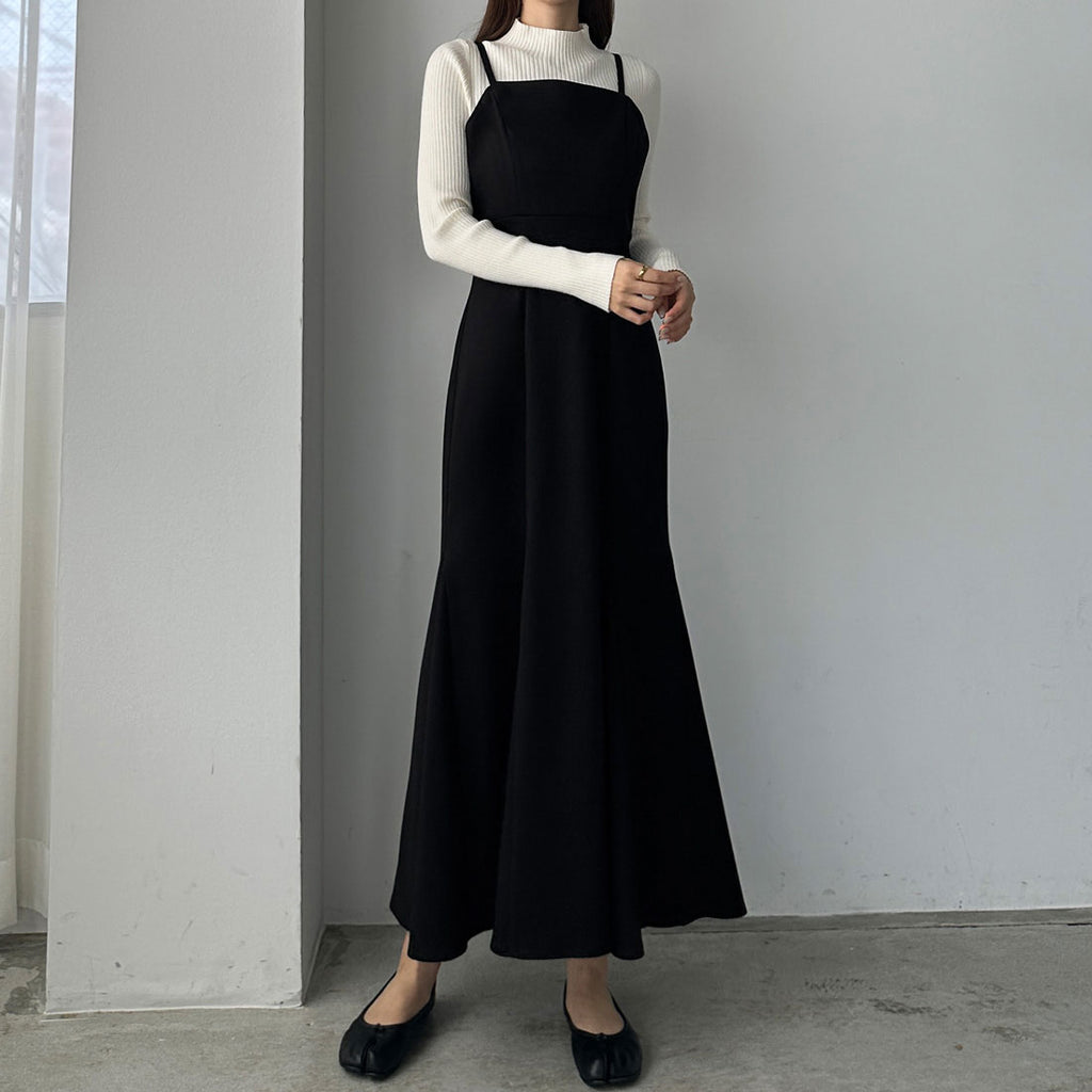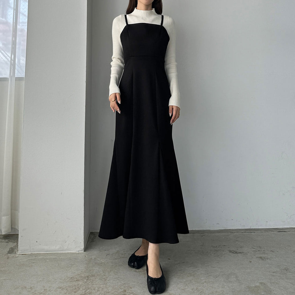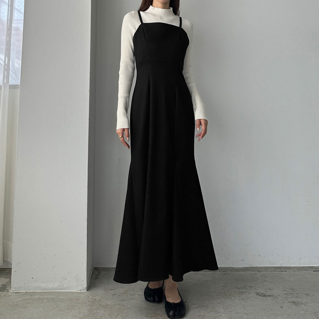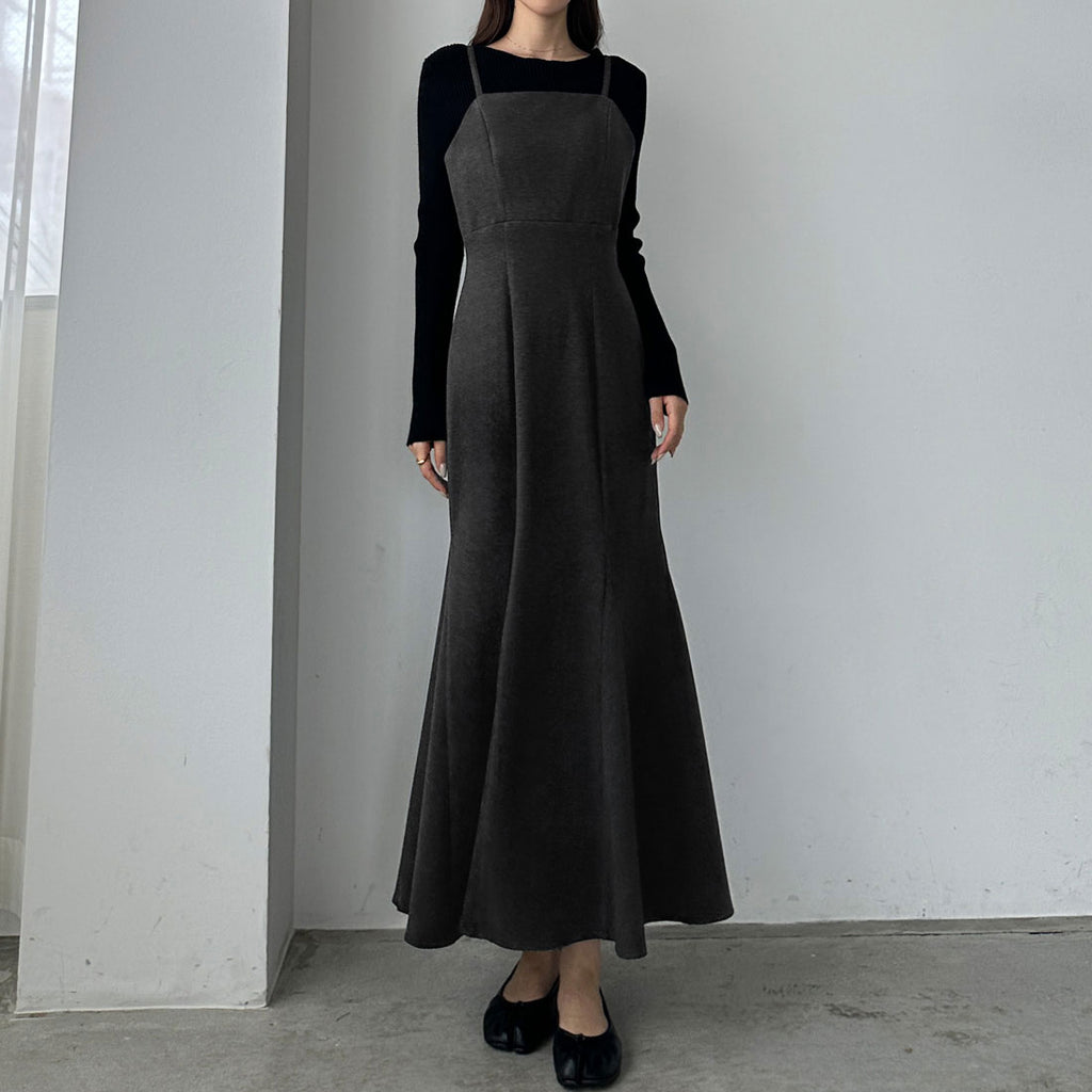 大人可愛くキマる、暖かい素材が嬉しいマーメイドキャミワンピース。