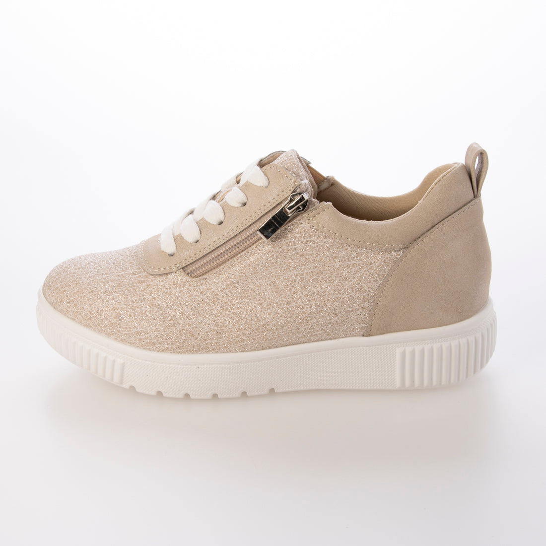サイドにジッパーが付いており、着脱が簡単なスニーカー。
