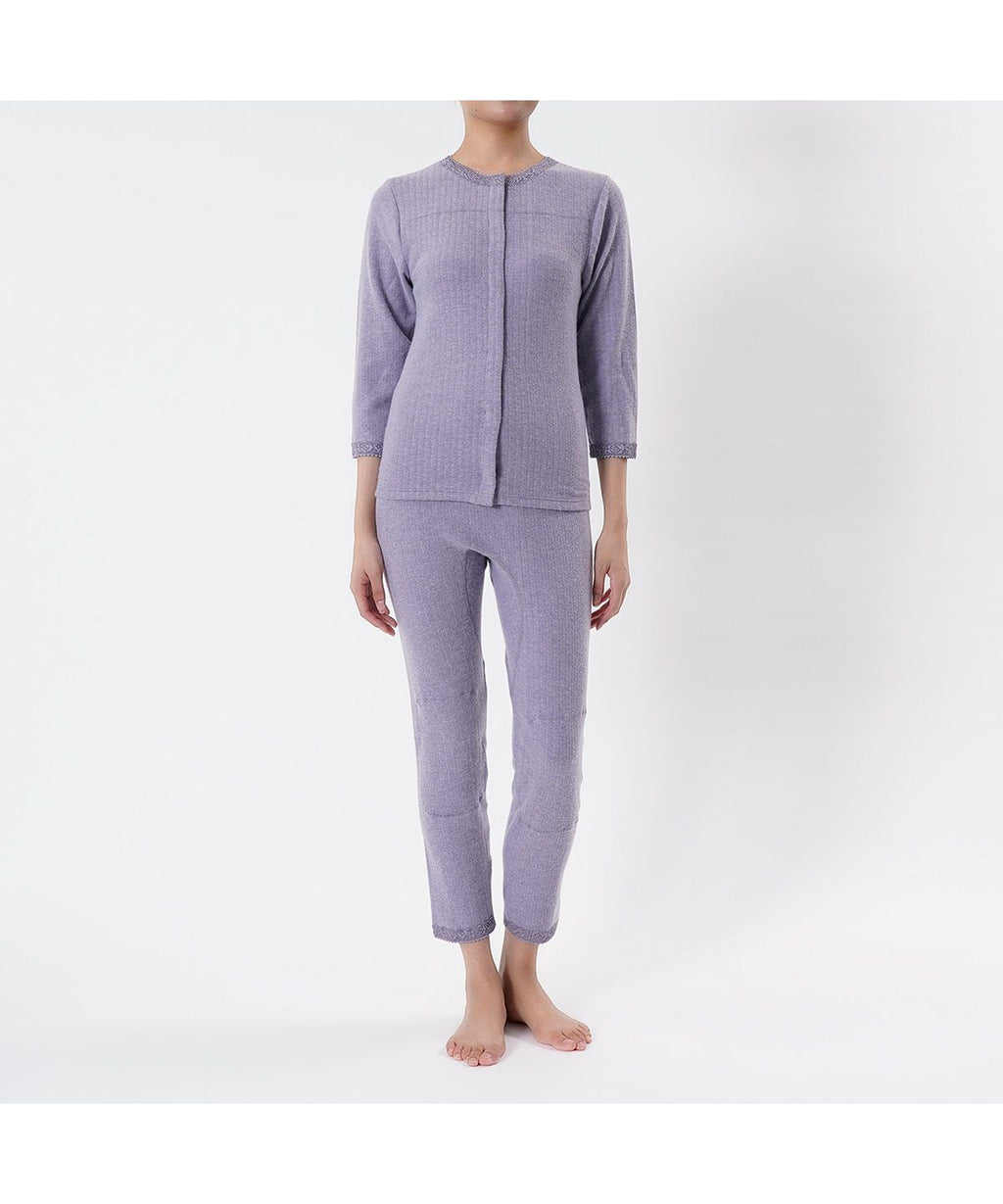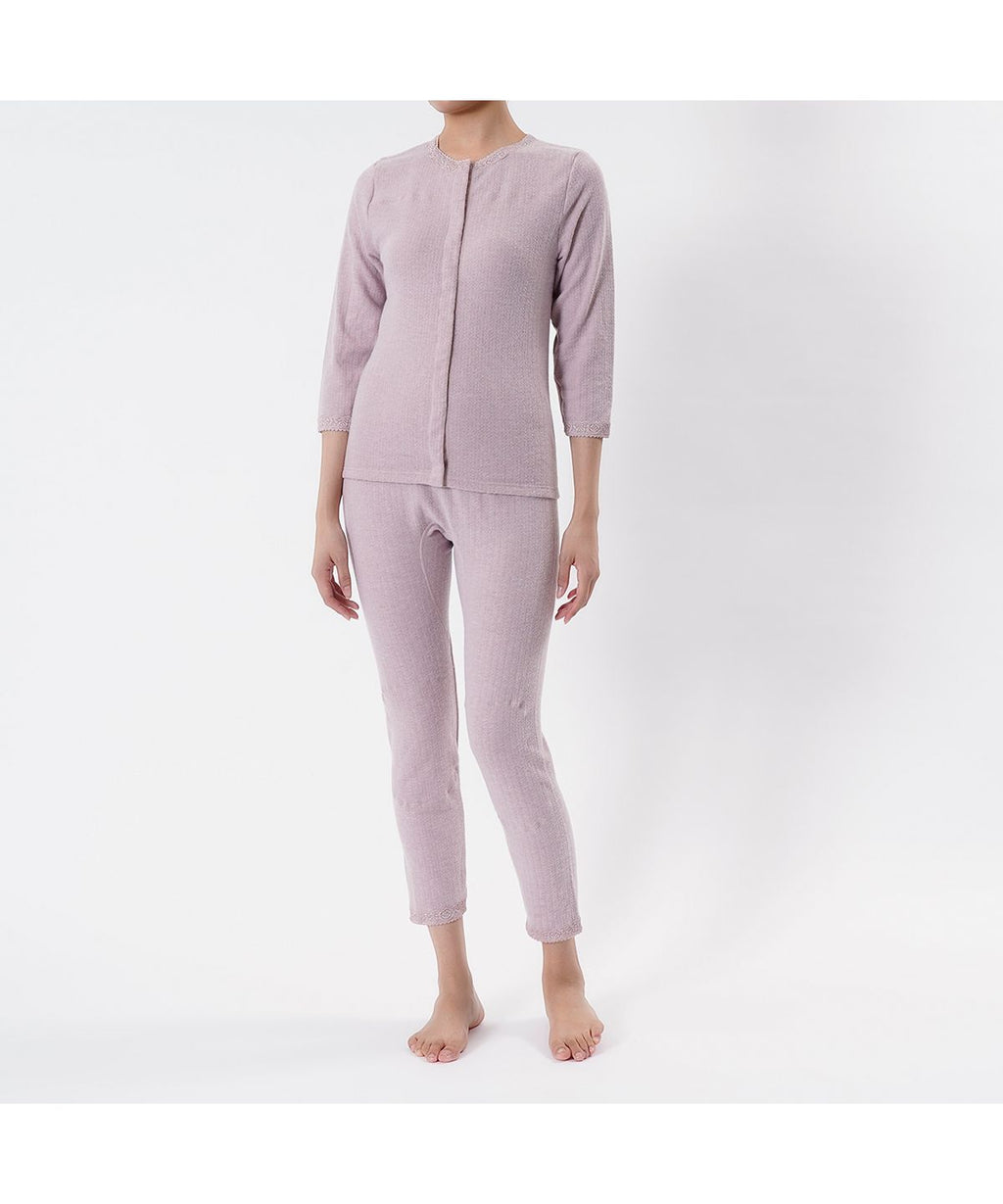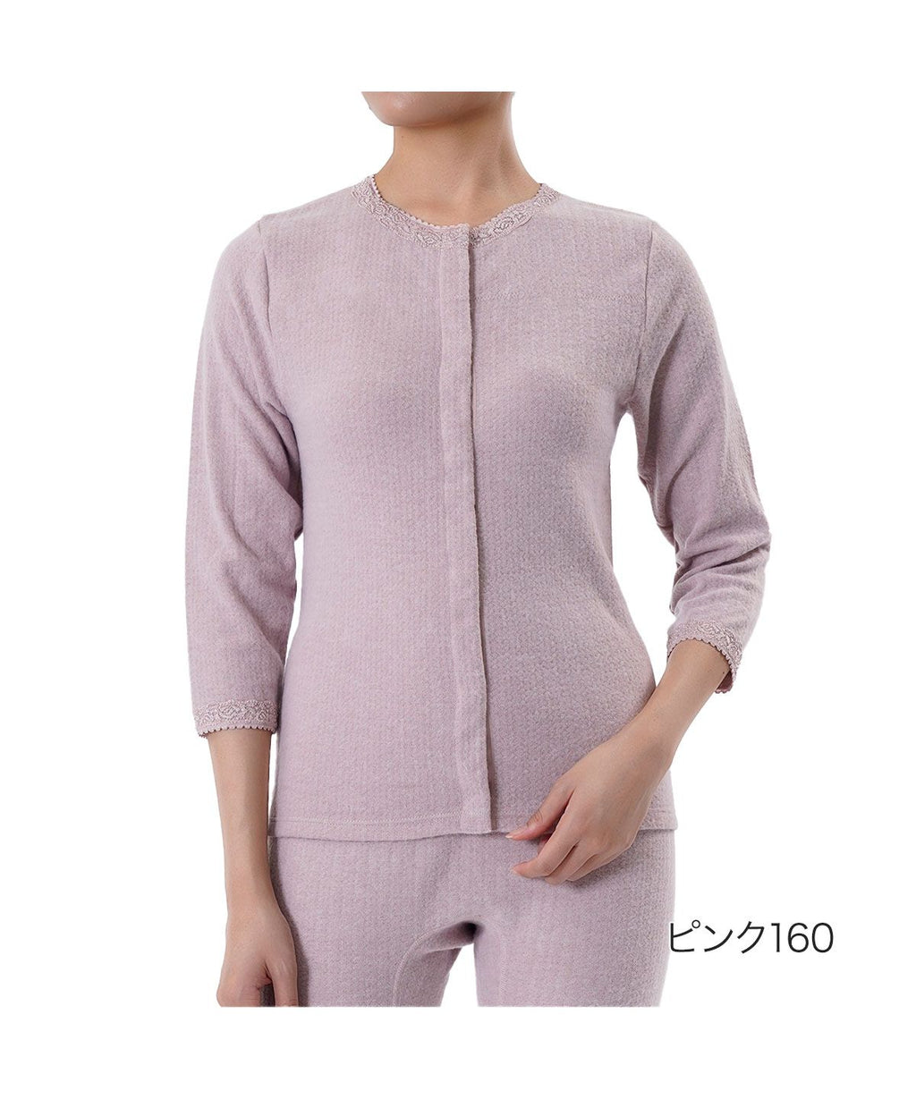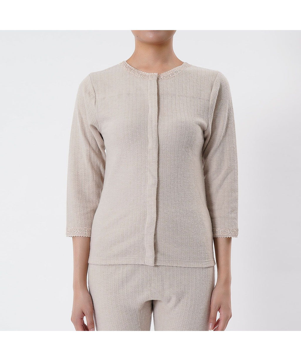 ●特徴:・長袖・無地 部分レース・前開き 授乳 介護・両面起毛