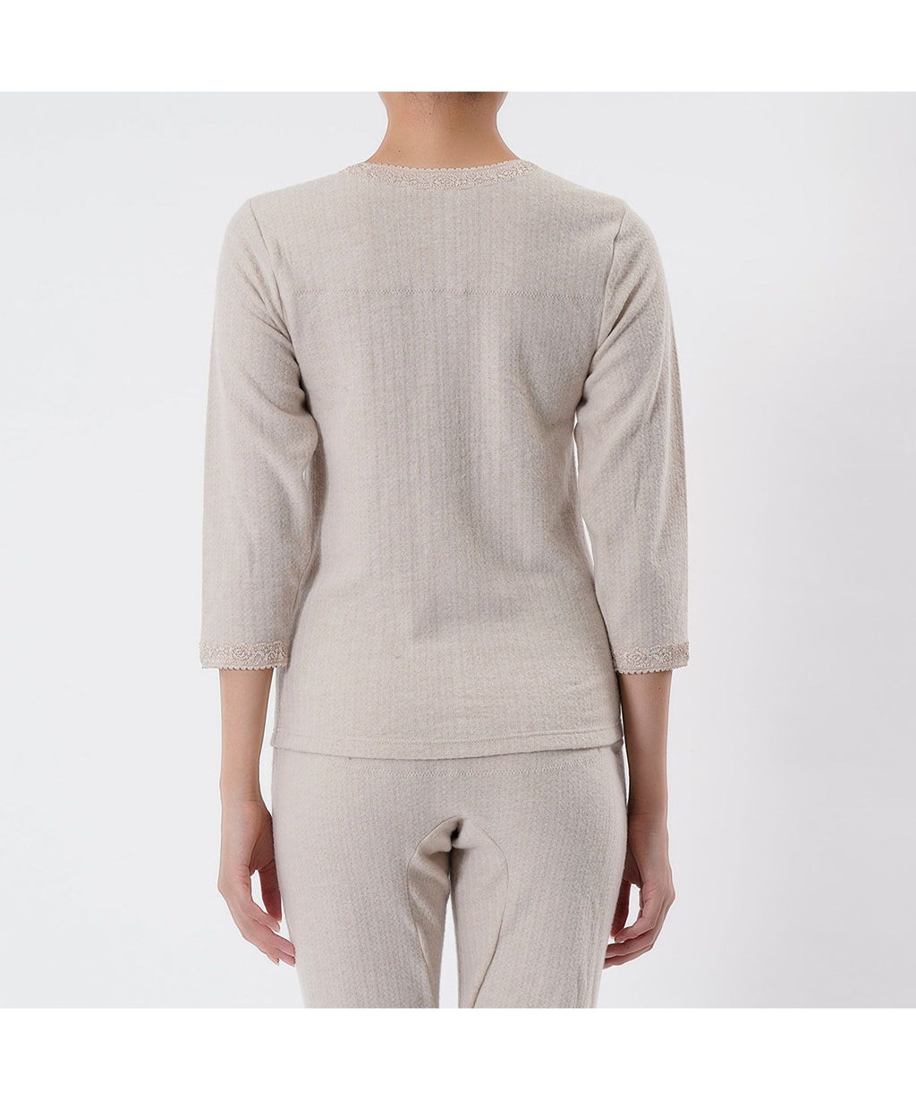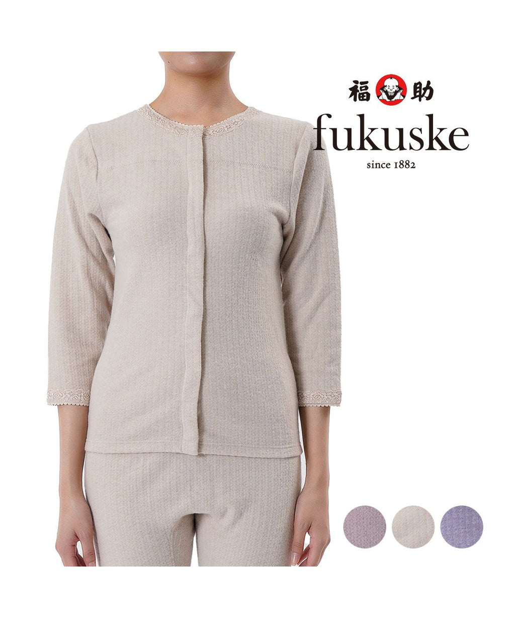 フクスケ fukuske 福助 公式 8分袖シャツ 長袖 気心地自慢 無地 部分レース 50ー9920