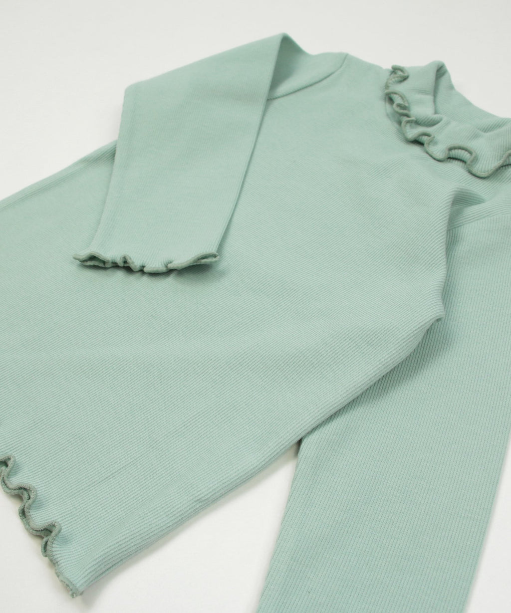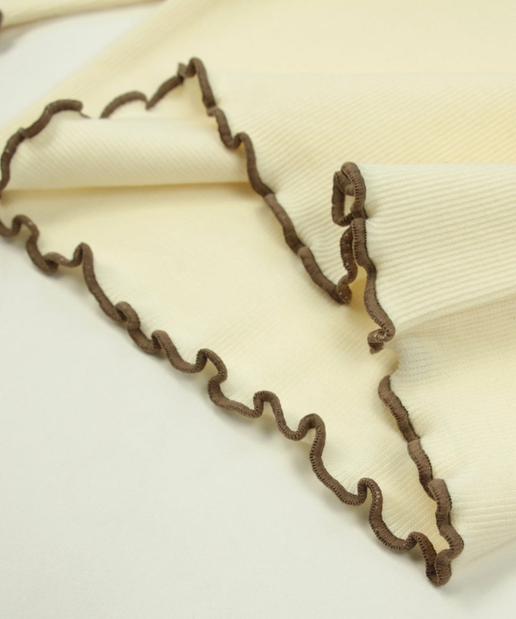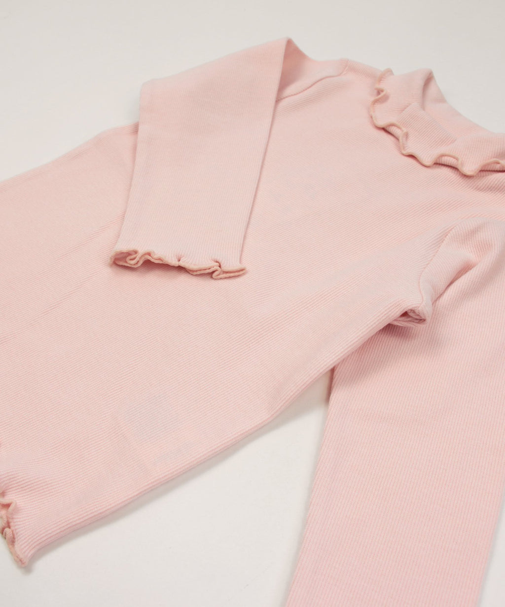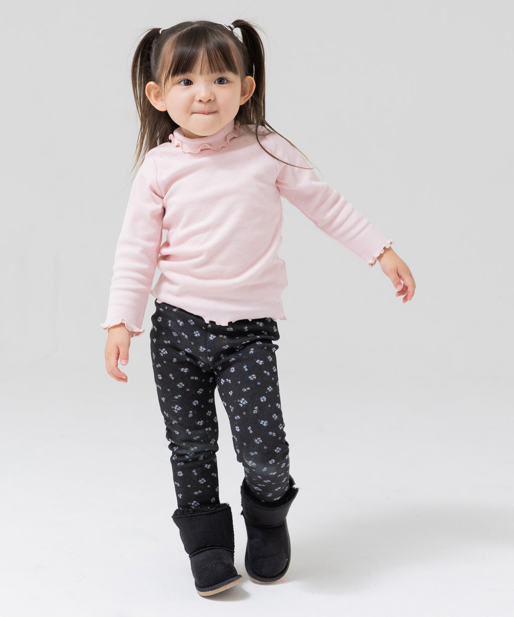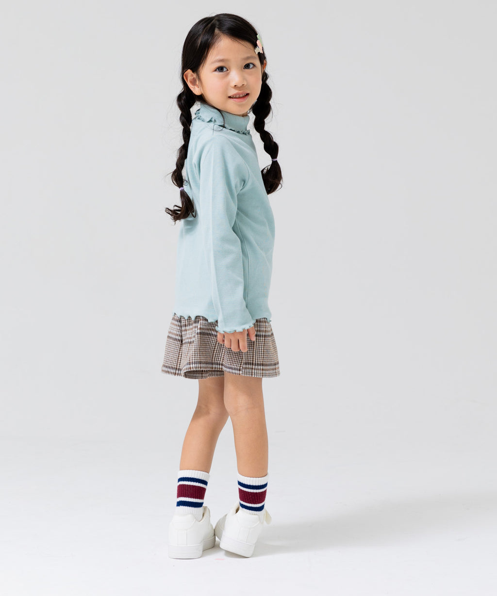 選べるカラーバリエーションが魅力★リブハイネックカットソー。柔らかくストレッチの効いた生地でフィット感があり、着心地はバツグン。丸みがある襟元と袖口・裾はかわいらしいメロー仕立て♪デイリーコーデはもちろんおしゃれ着との相性も◎