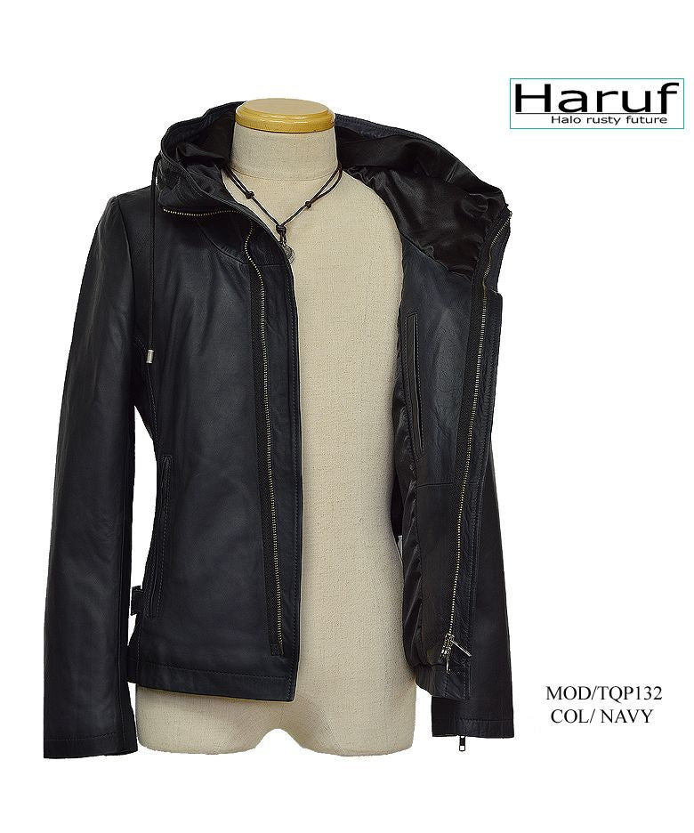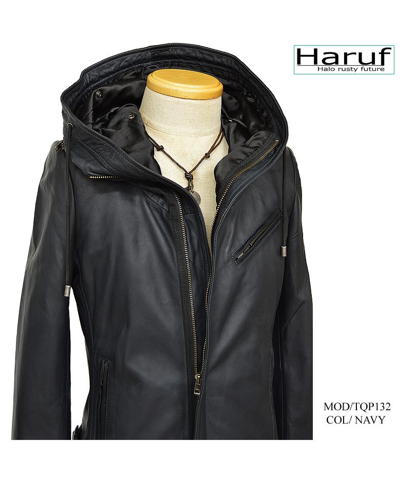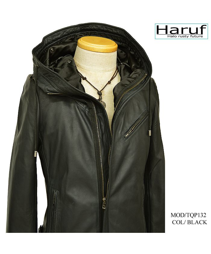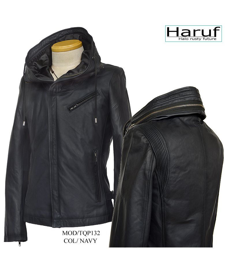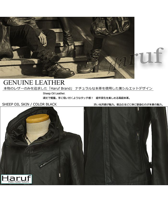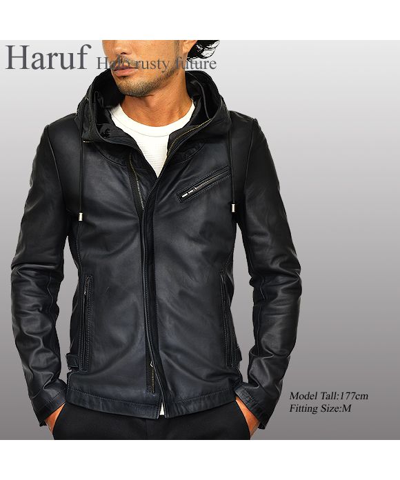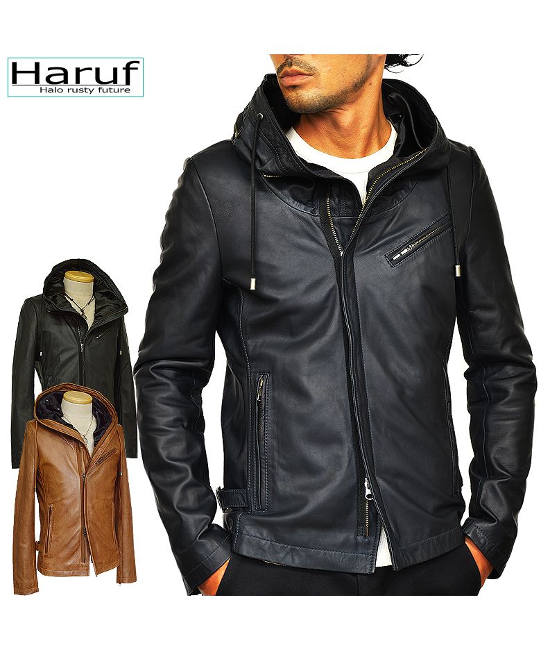ハルフ Haruf レザージャケット ライダースジャケット 革ジャン メンズ 本革 フード パーカー ラムレザー オイルレザー 皮ジャン シンプル TQPUSA132