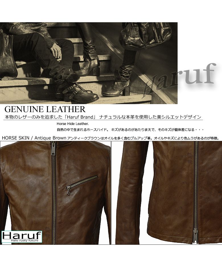 ハルフ Haruf 本革 レザージャケット シングルライダースジャケット 革ジャン メンズ ホースハイド 馬革 秋冬 US192H