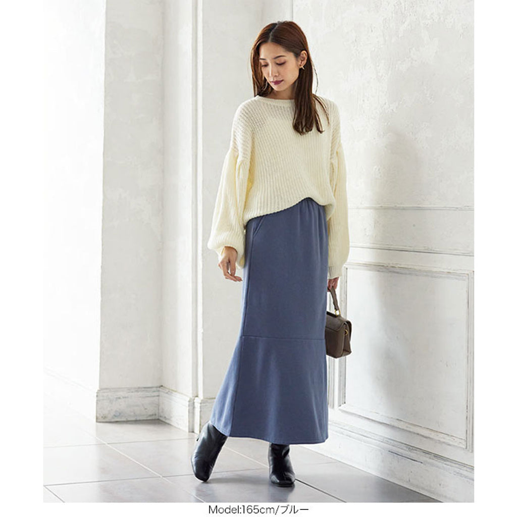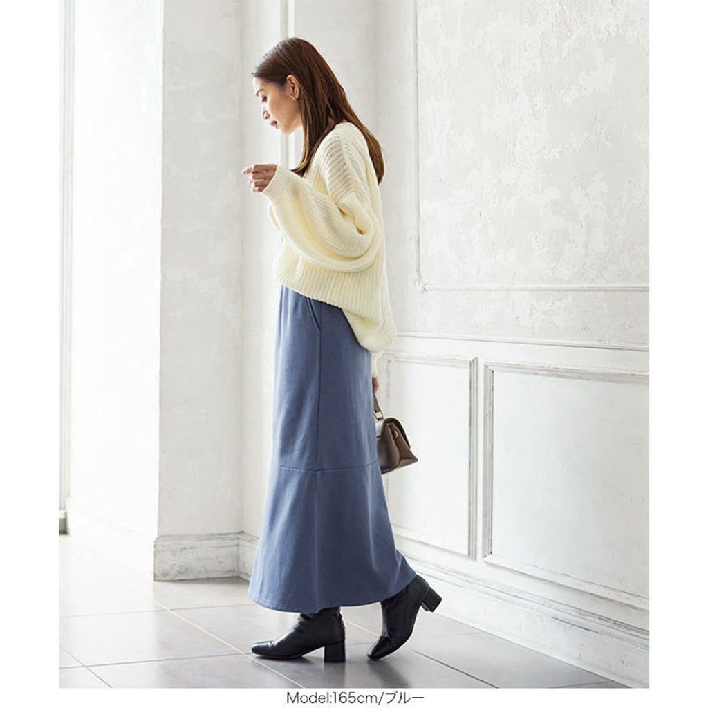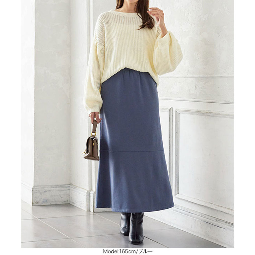 裏起毛マーメイドスカート [M3489]レディース スエット ロング丈 ウエストゴム 暖かい ゆったり リラックス 白 黒 デイリー カジュアル きれいめ 冬 大人 シンプル おうち あったか 着回し