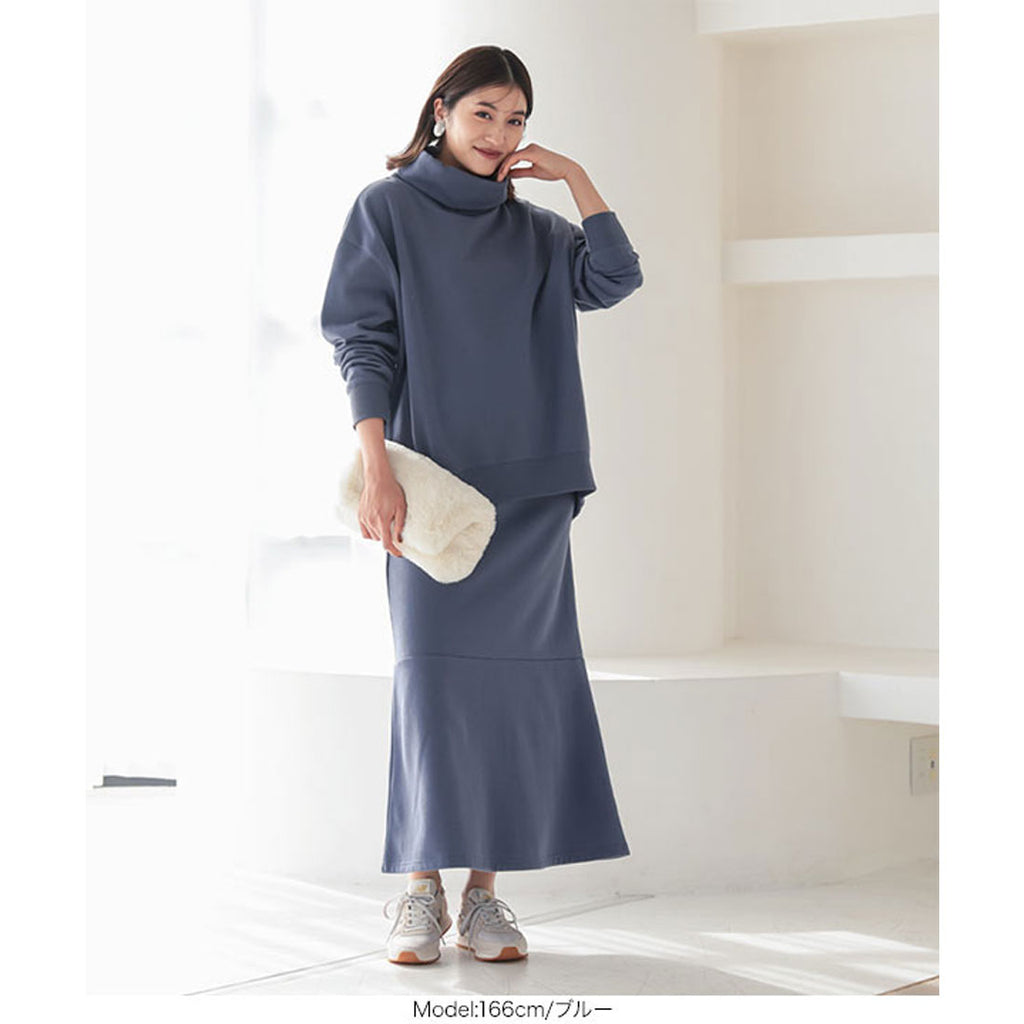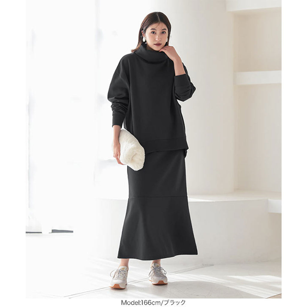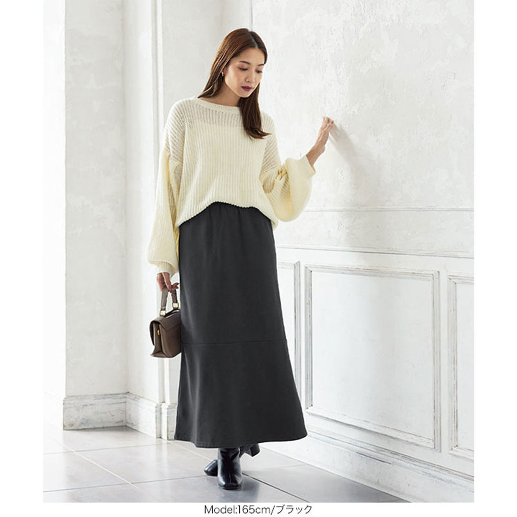 裏起毛マーメイドスカート [M3489]レディース スエット ロング丈 ウエストゴム 暖かい ゆったり リラックス 白 黒 デイリー カジュアル きれいめ 冬 大人 シンプル おうち あったか 着回し