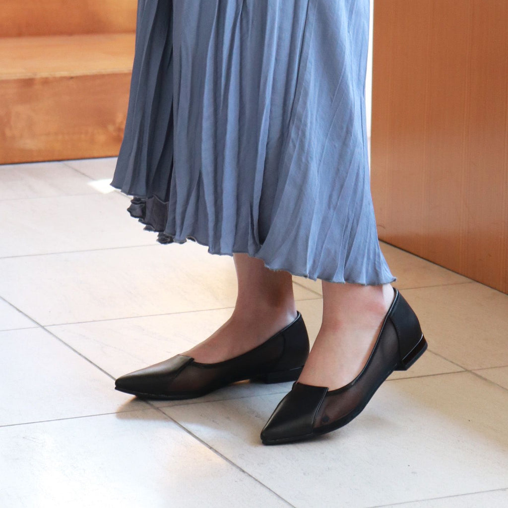 ローヒールのチュールコンビパンプスが「パラディクルール」から登場しました。