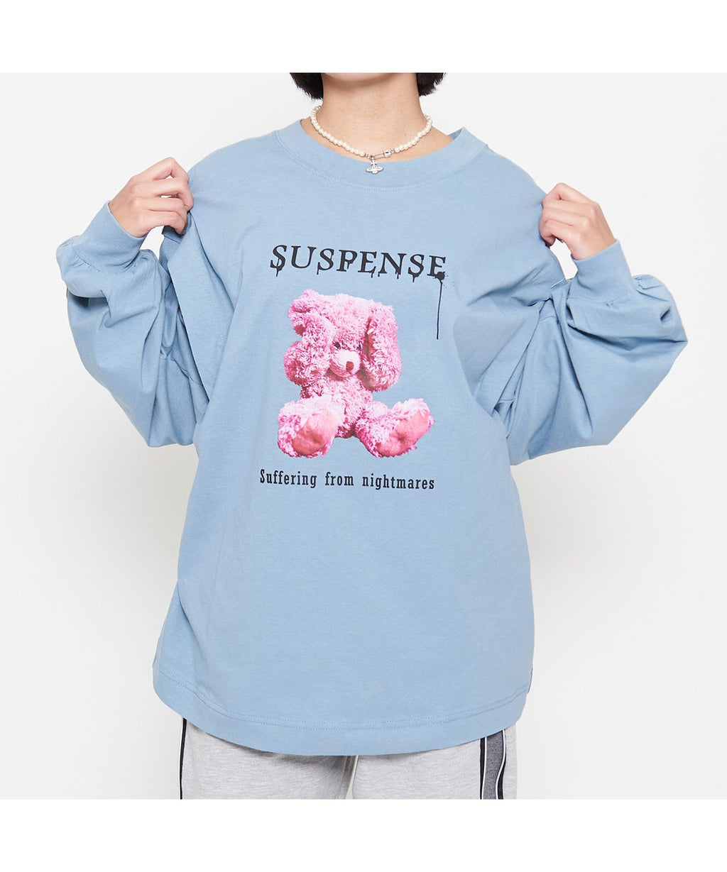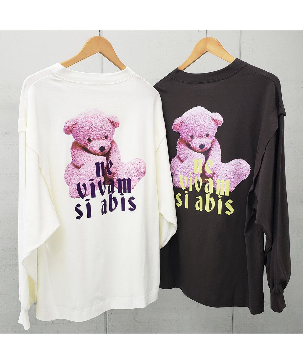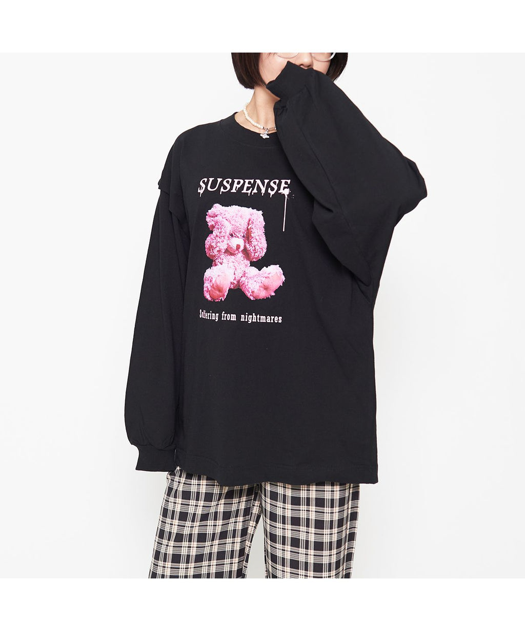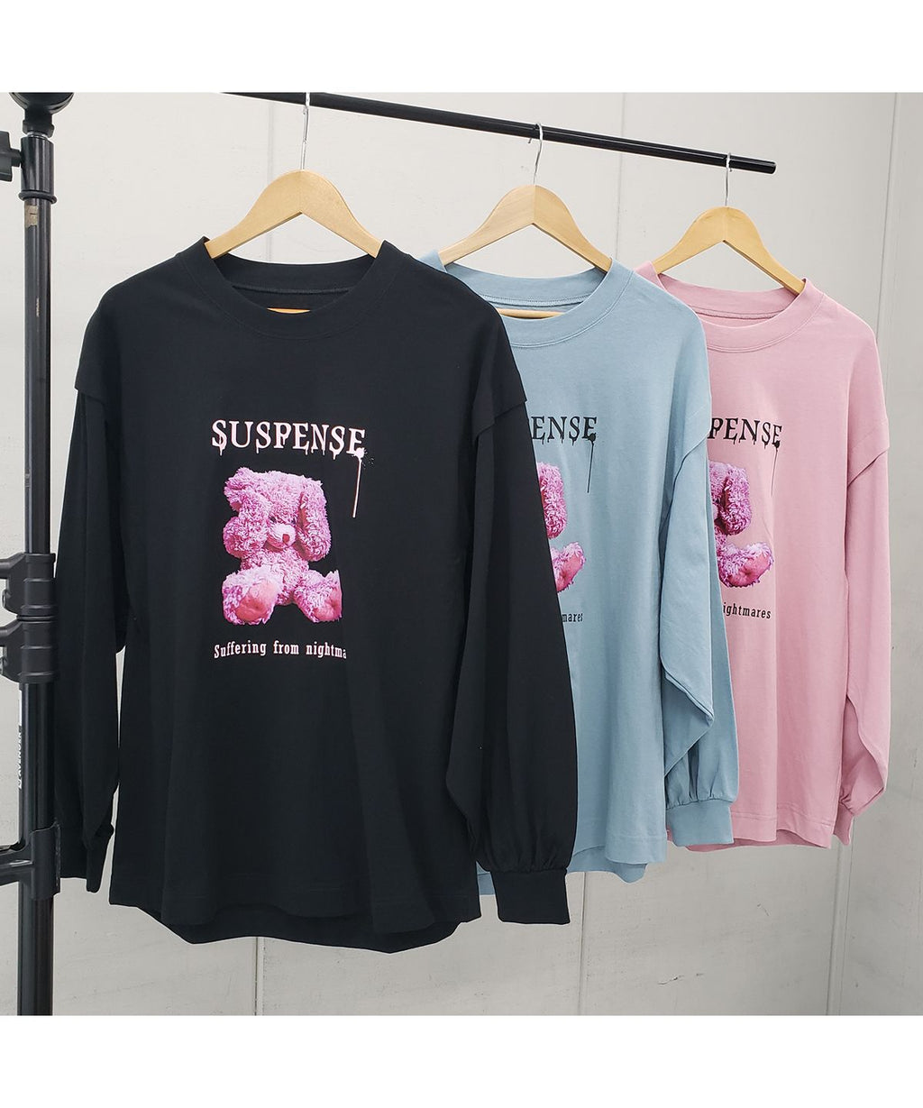 クレイジーベアタックロンT 長袖 ロングTシャツ 病みくま 病みクマ クマ くま ベア 韓国 地雷系 病み系 量産型 原宿系 ビッグシルエット ストリート 可愛い プチプラ ロンT カットソー レディース ロンティー カジュアル ロゴ プリント 闇可愛い テディベア