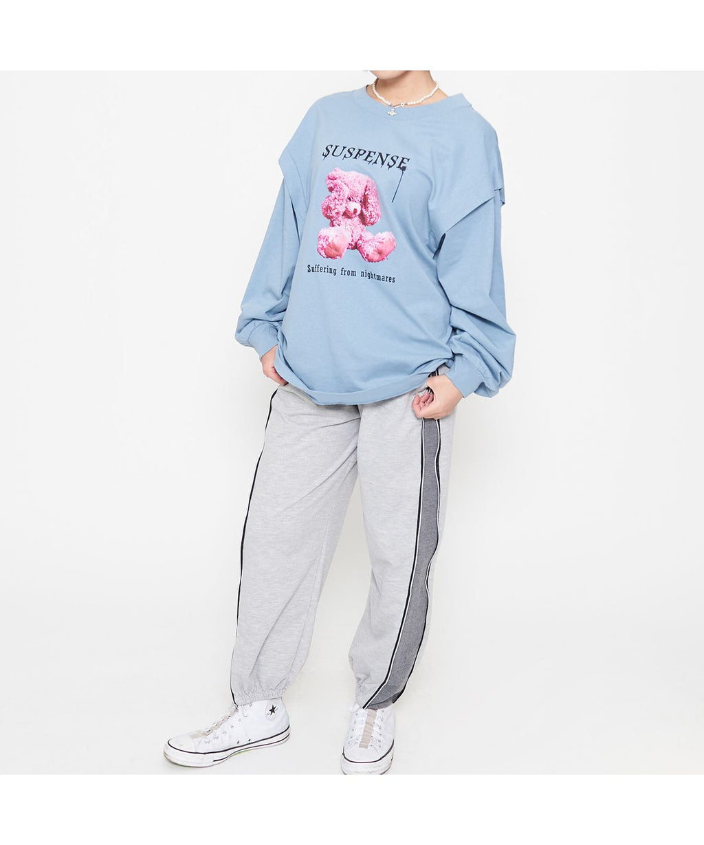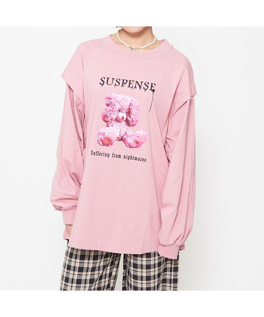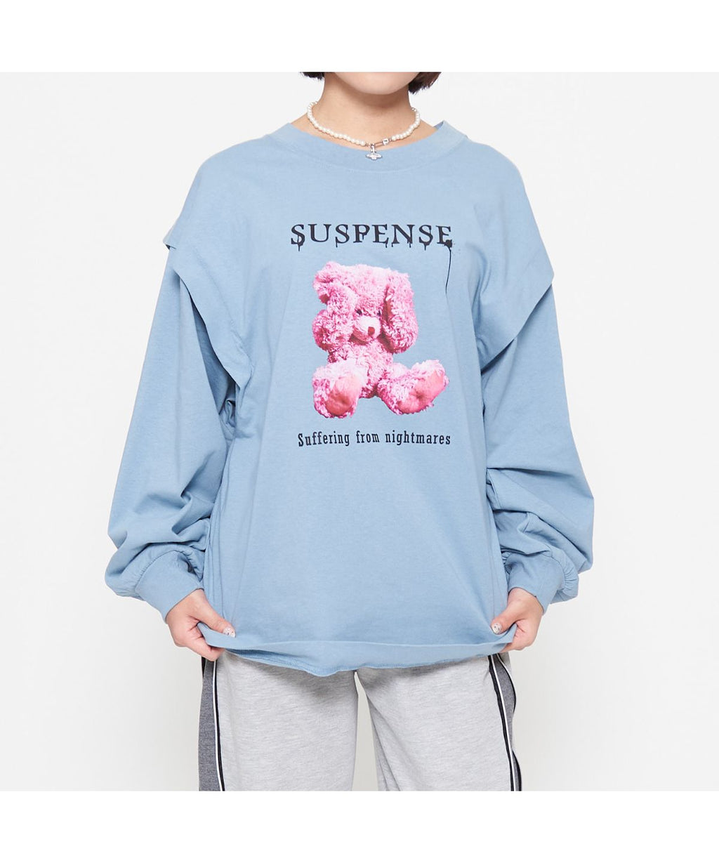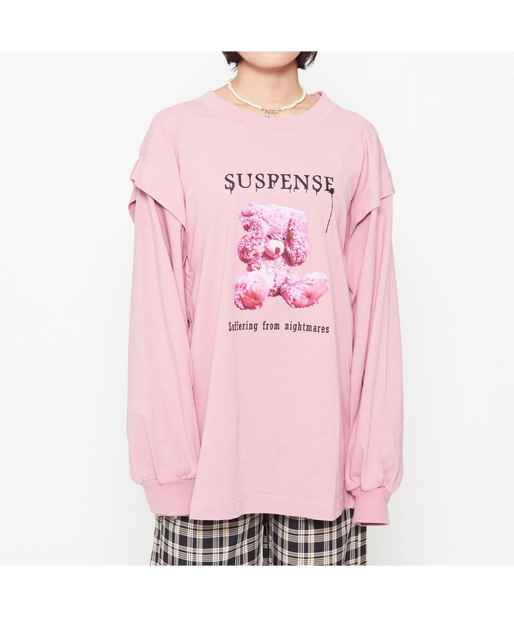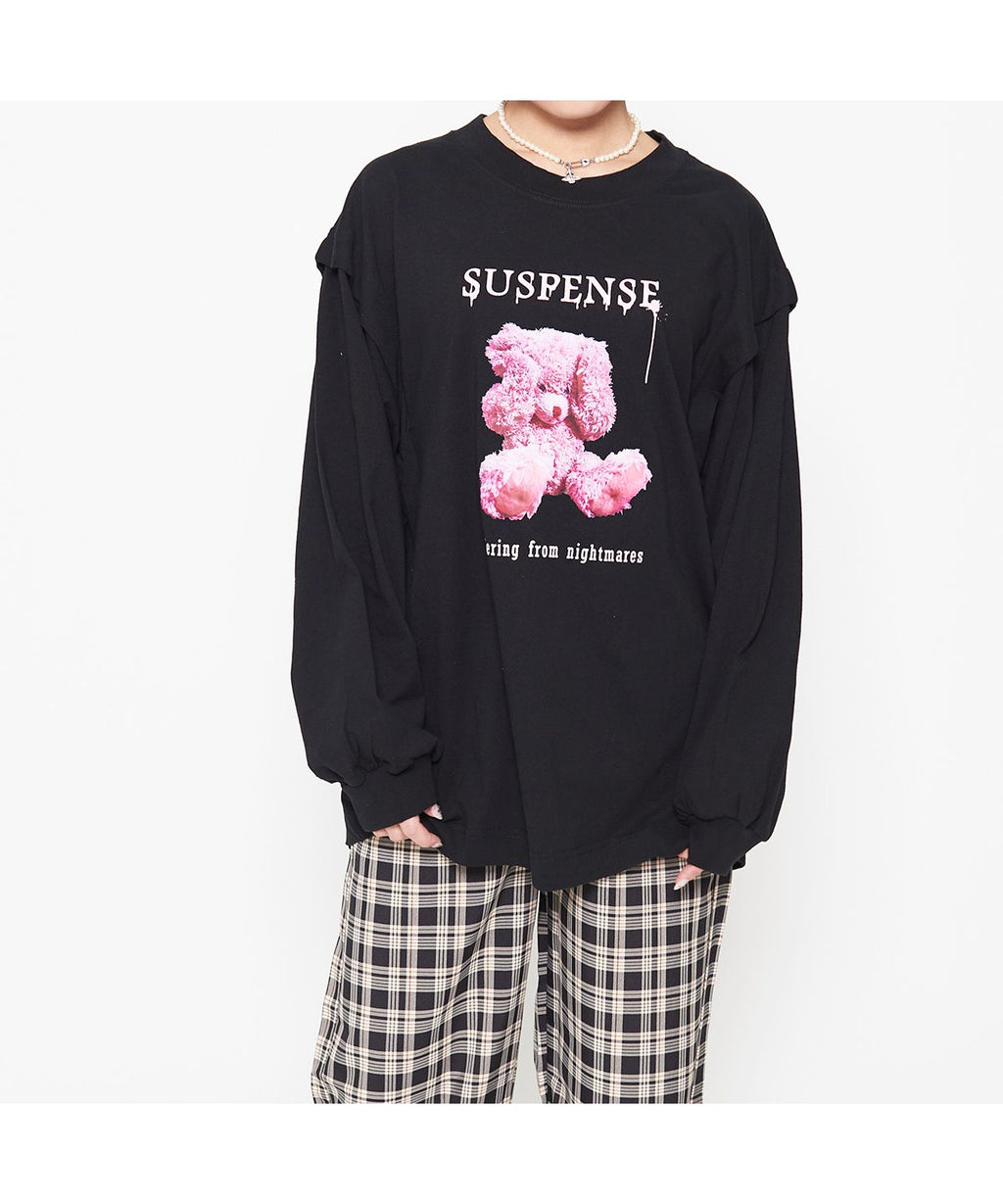 クレイジーベアタックロンT 長袖 ロングTシャツ 病みくま 病みクマ クマ くま ベア 韓国 地雷系 病み系 量産型 原宿系 ビッグシルエット ストリート 可愛い プチプラ ロンT カットソー レディース ロンティー カジュアル ロゴ プリント 闇可愛い テディベア