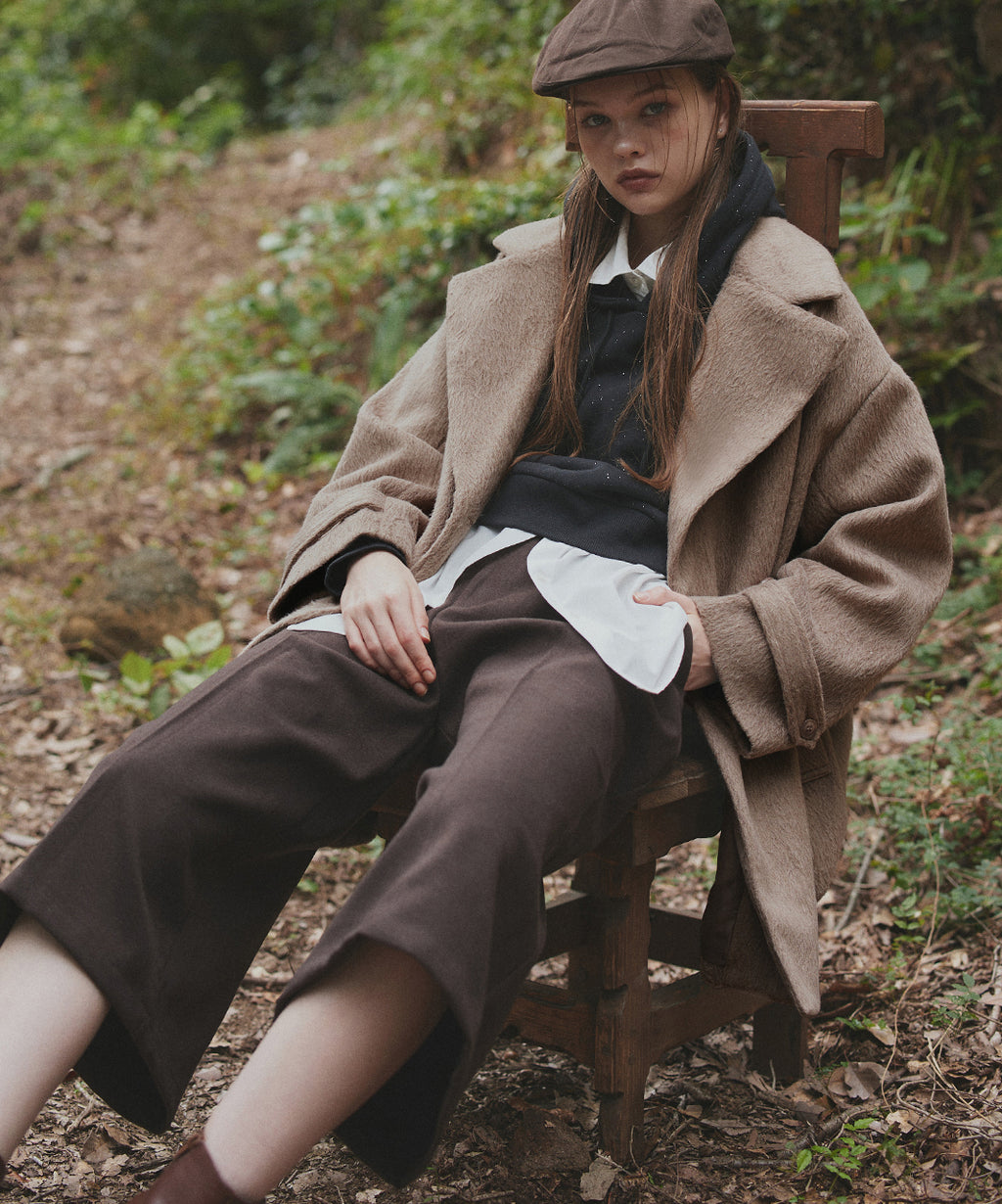 お手入れのしやすい毛足が短めのシャギーと、コクーンシルエットが女性らしい印象の1着