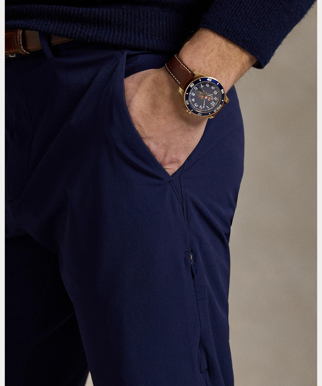 体から汗を発散させ、ドライで涼しく快適な着心地をキープする、マットなストレッチ素材を使用したパンツ