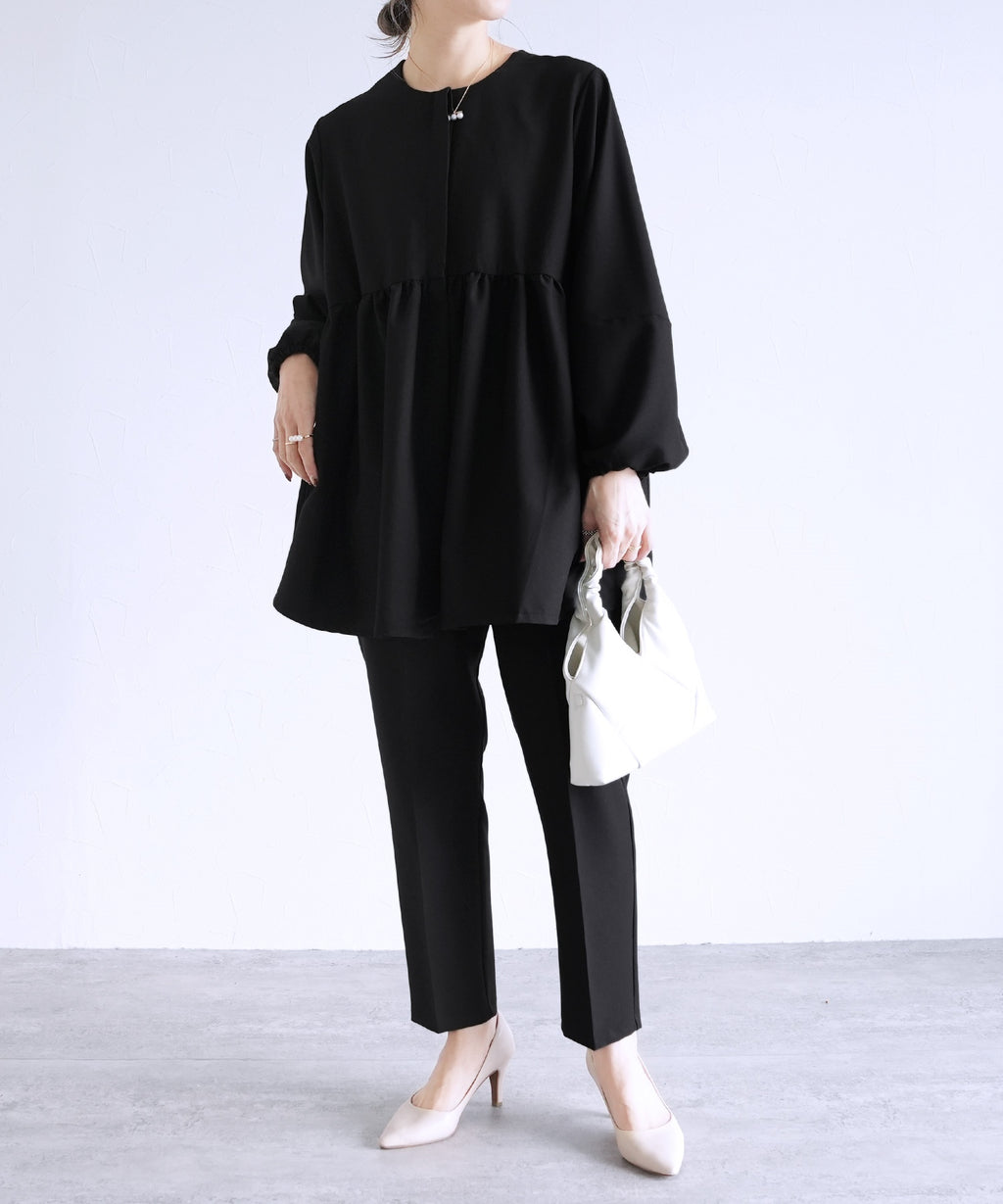 ★品番:bel-hr-0616-set2:ペプラムベスト×テーパードパンツ×トップス3点セット