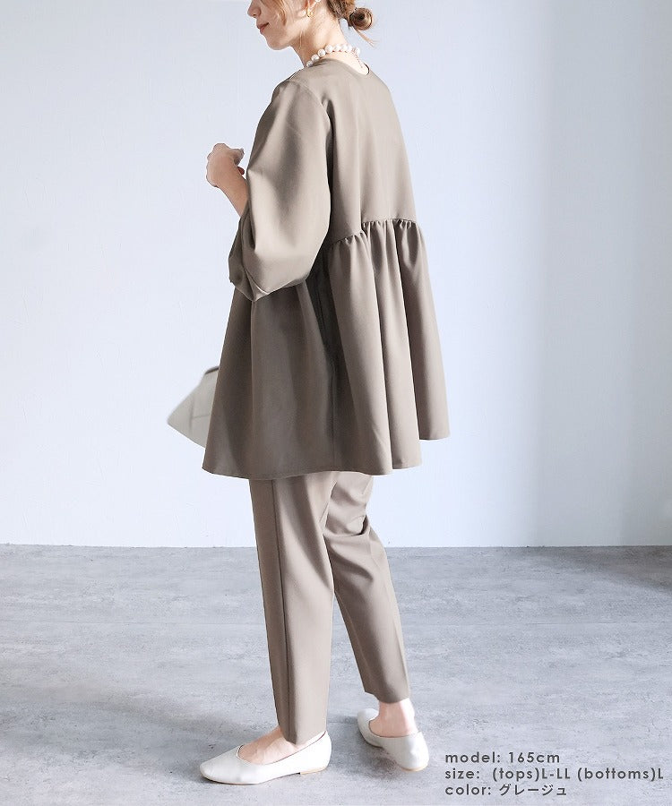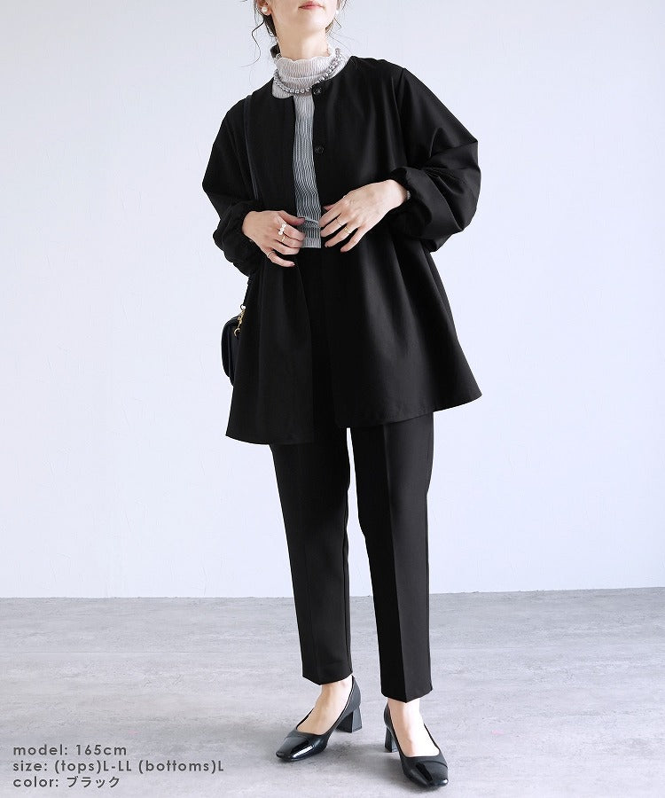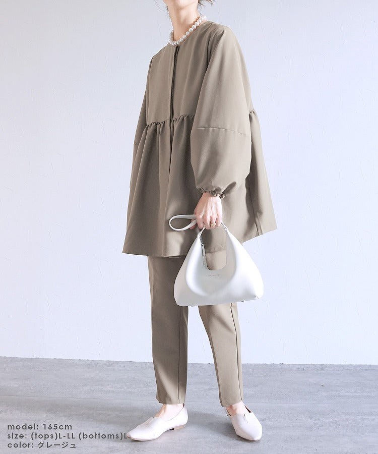 レディーススーツ セットアップ スーツ 洗える 卒業式 卒園式 入園式 入学式 オケージョン reca レカ ジャケット テーパードパンツ カジュアル シンプル セレモニー 通勤 織 ペプラム ボリューム袖 たぽん袖 長袖 ノーカラー クルーネック 前後2way スタイルアップ 体型カバー カジュアル きれいめ フェミニン ゆったり マタニティ フォーマル 結婚式 披露宴 二次会 セレモニースーツ セットアップ セットアップ対応 ママ 女性 楽ちん トップス 春 大人女子 30代ファッション 30代コーデ 40代ファッション 40代コーデ ネイビー 紺 ブラック 黒