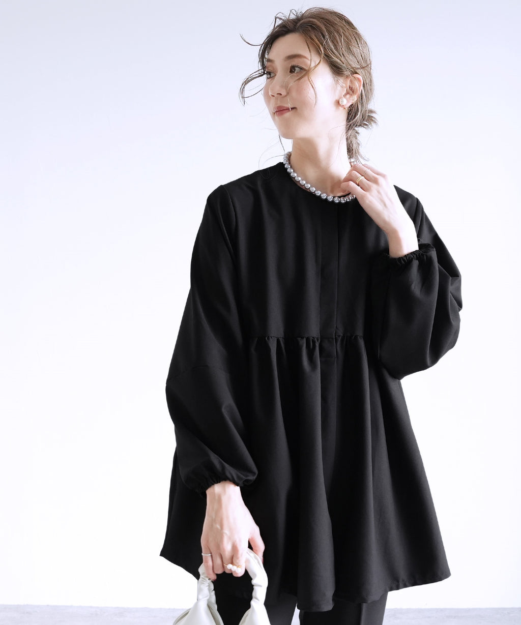 ★品番:aq24112005-1:フレアスリーブハイネックシアーブラウス