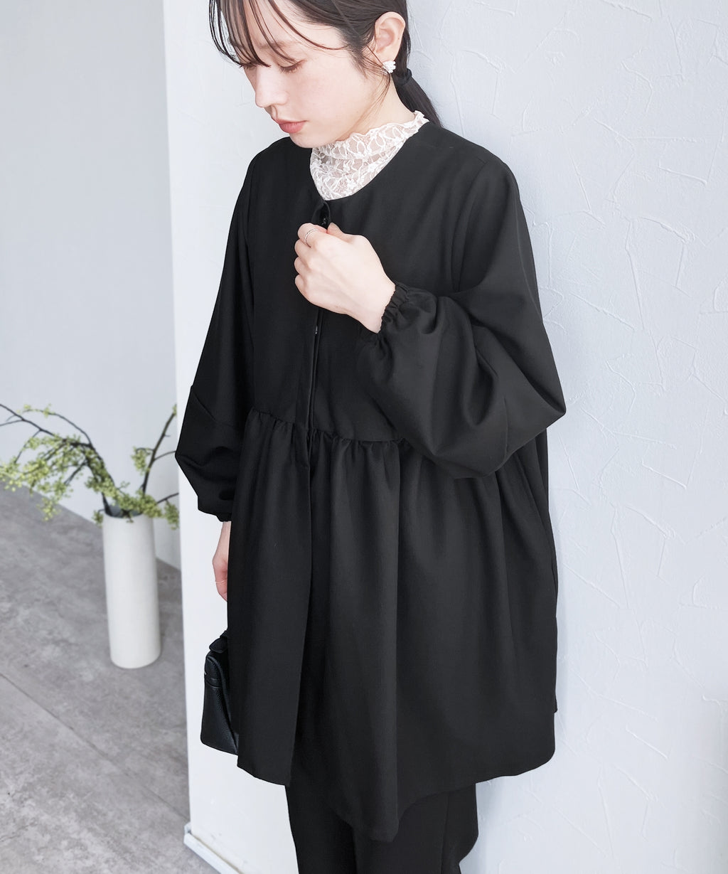 ◇◇TOPS◇◇:ペプラムギャザーノーカラージャケット