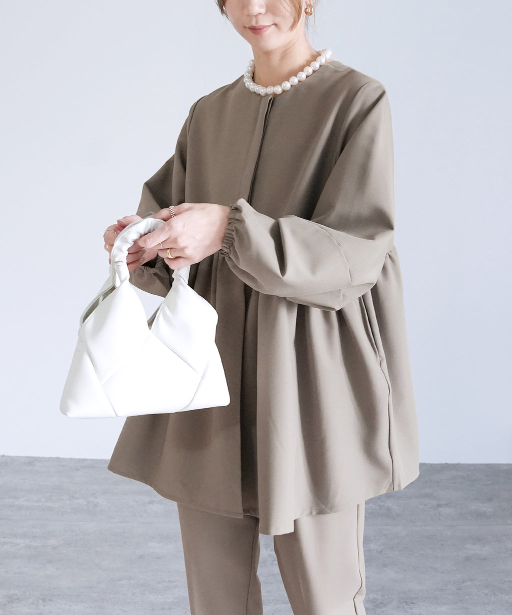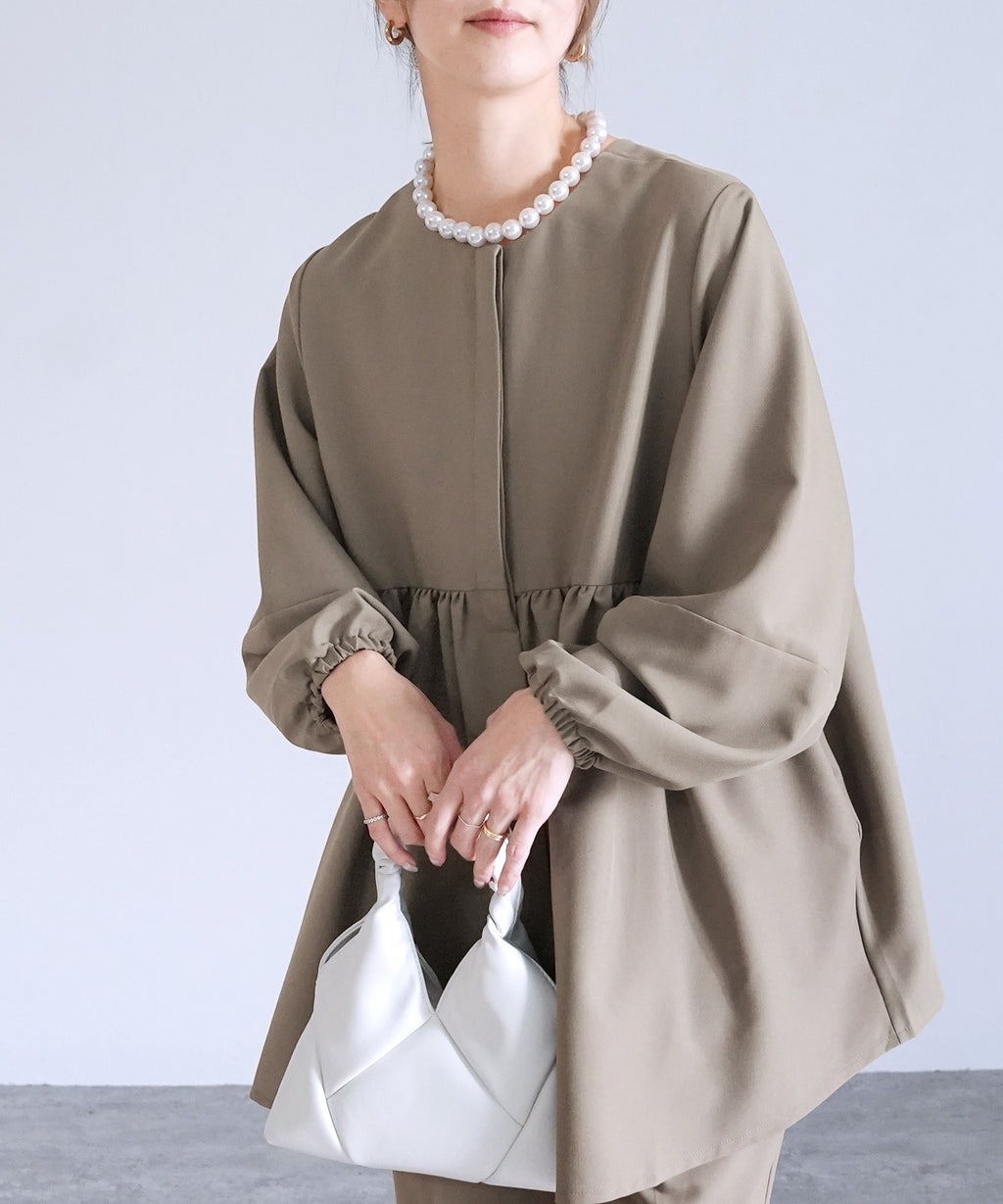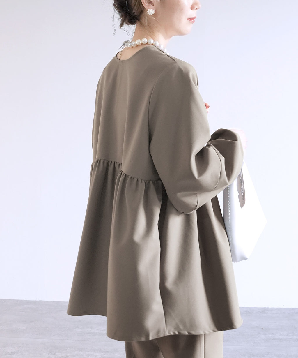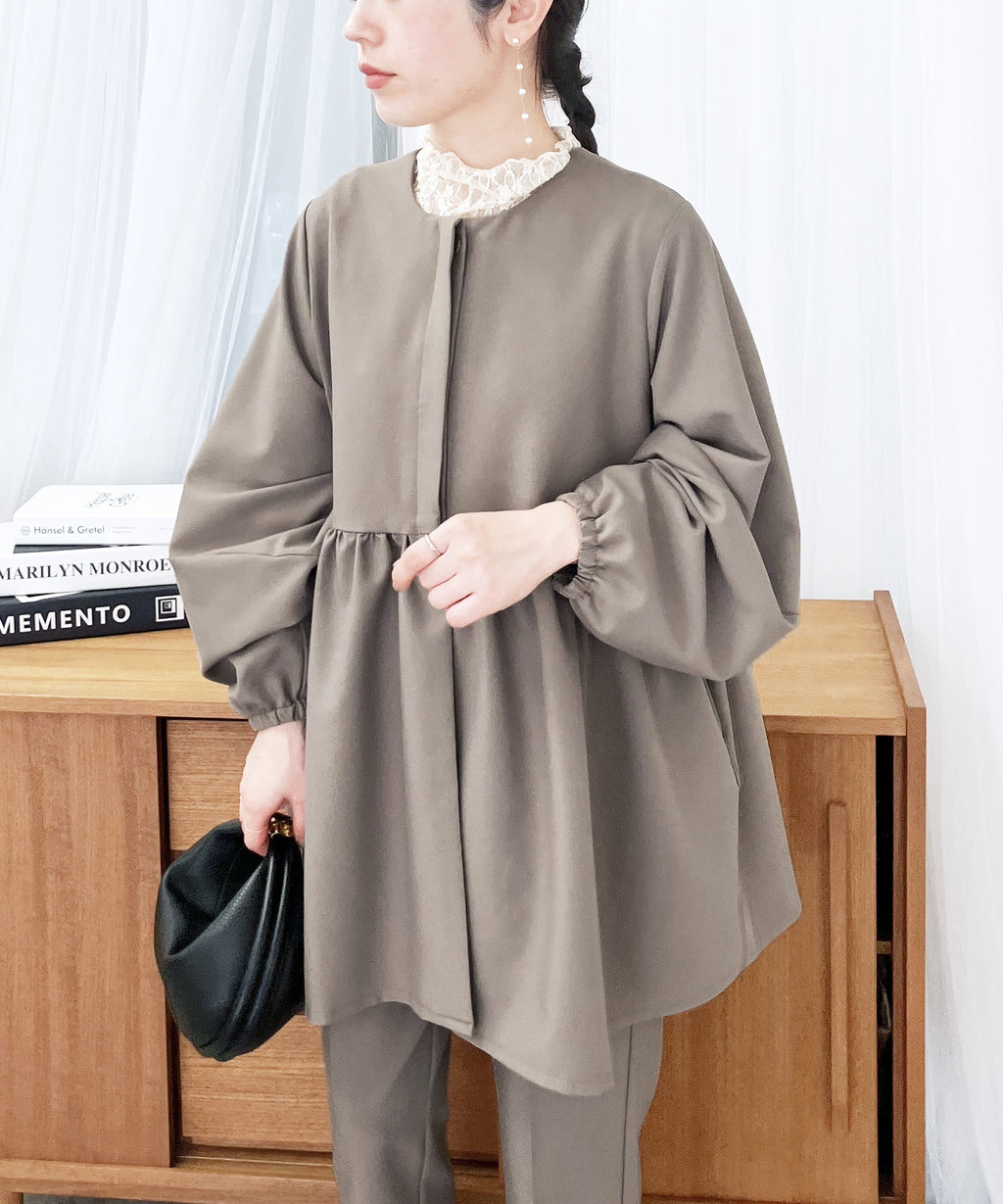 ★品番:bel-hr-0622:ペプラムギャザーノーカラージャケット
