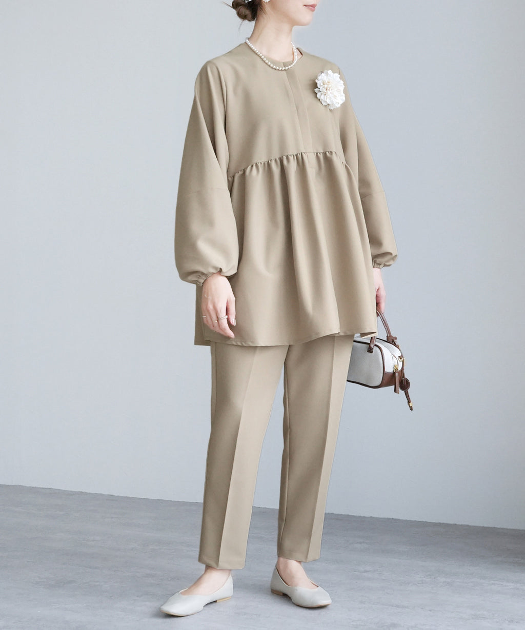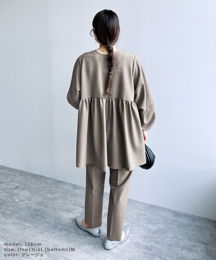 ★品番:bel-hr-0616-set:ペプラムベスト×テーパードパンツ2点セット