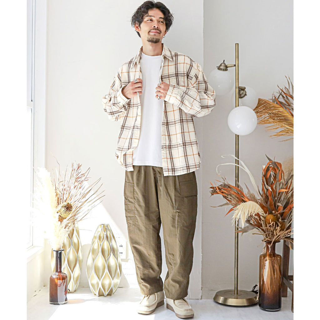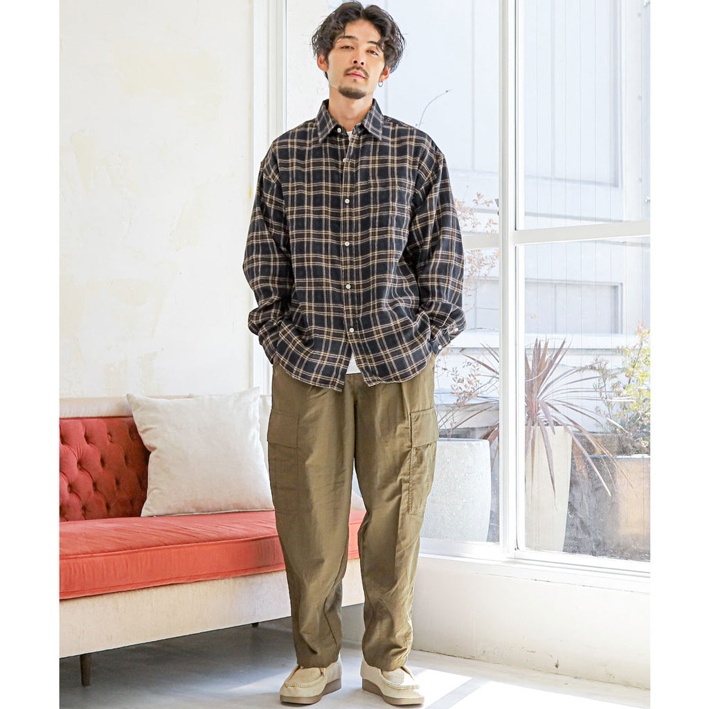 若干の起毛感がシーズンムードを盛り上げ、ネルシャツ特有の柔らかく温かみのある印象に。