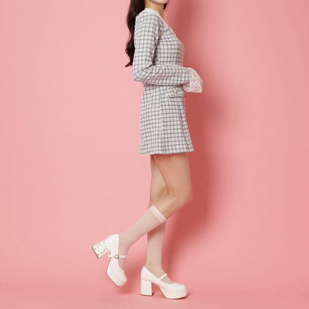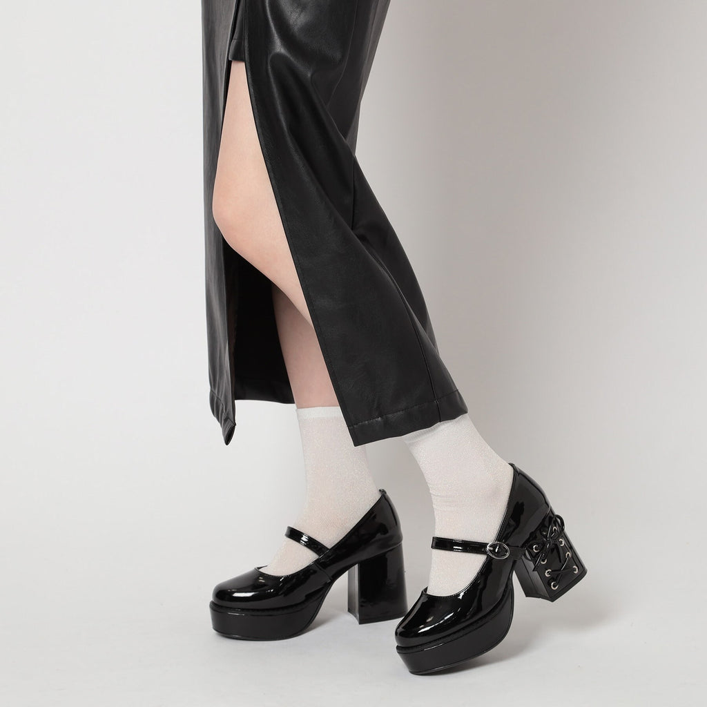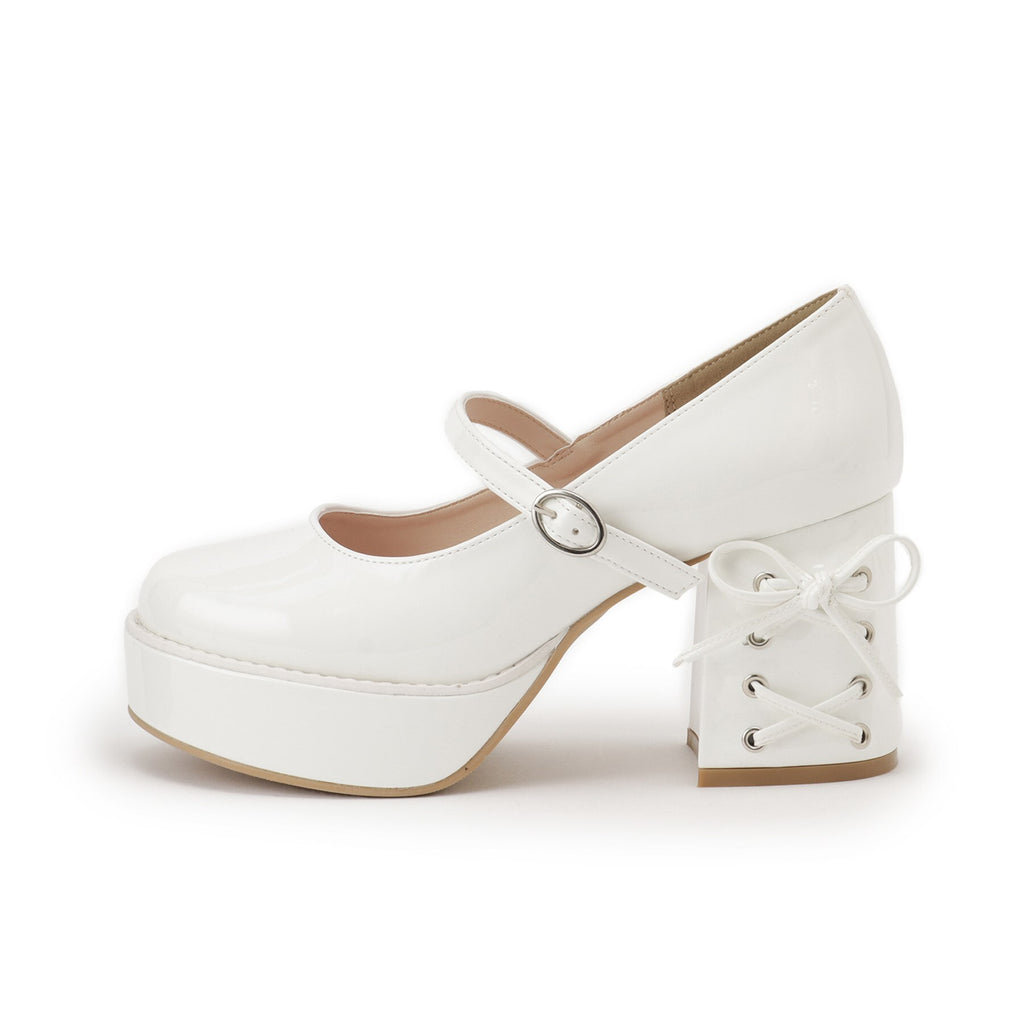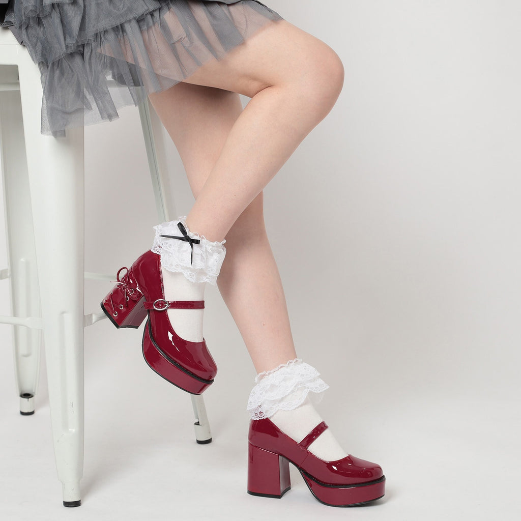 太めヒールのサイドにレースアップデザインがついているガーリーパンプス☆