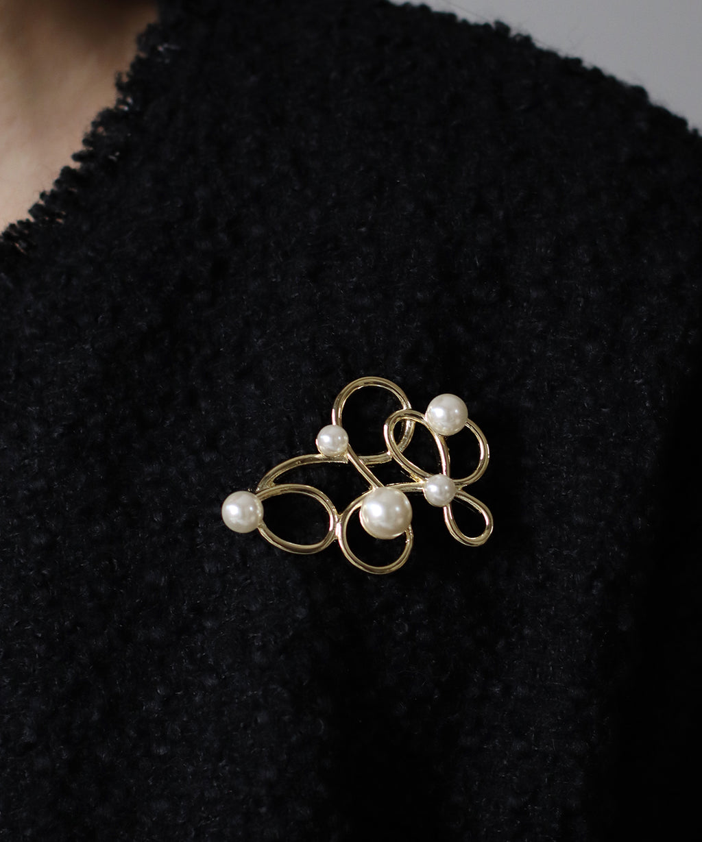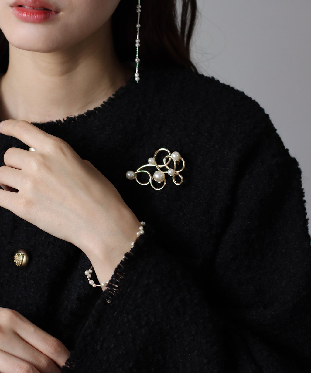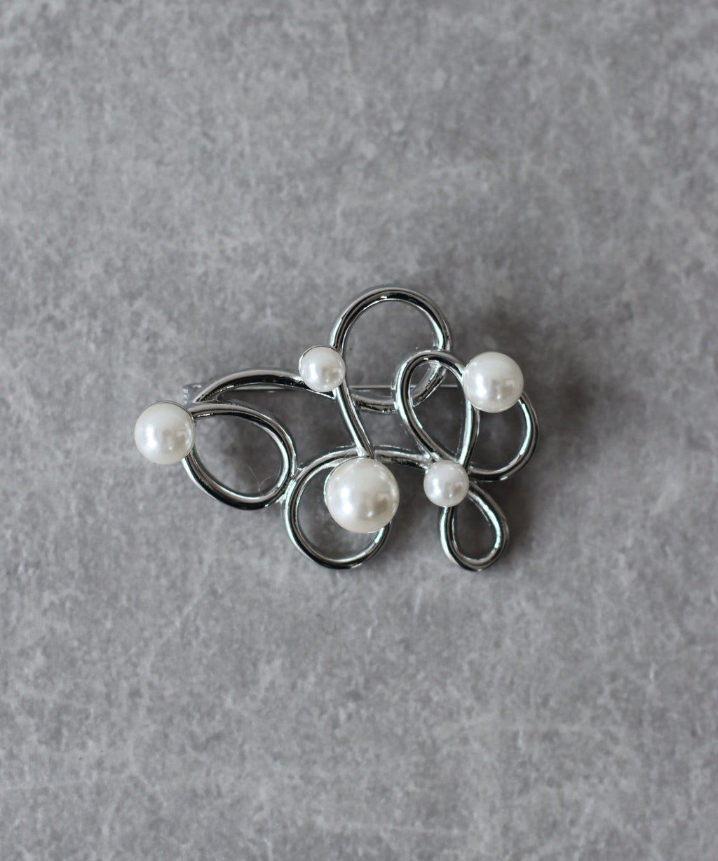 付けるだけでこなれ感をプラス。柔らかな曲線を描くメタルに上品なパールを組み合わせた華やかなコサージュ。