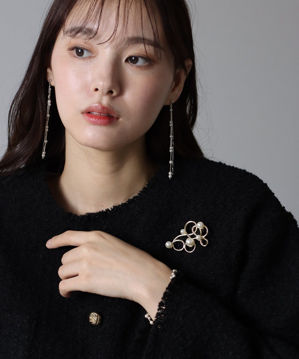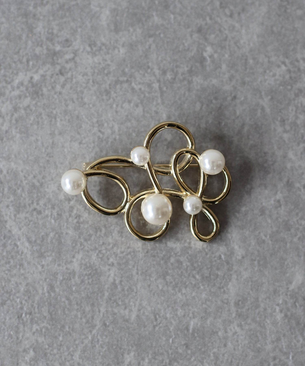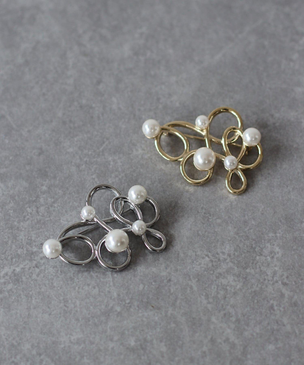 付けるだけでこなれ感をプラス。柔らかな曲線を描くメタルに上品なパールを組み合わせた華やかなコサージュ。