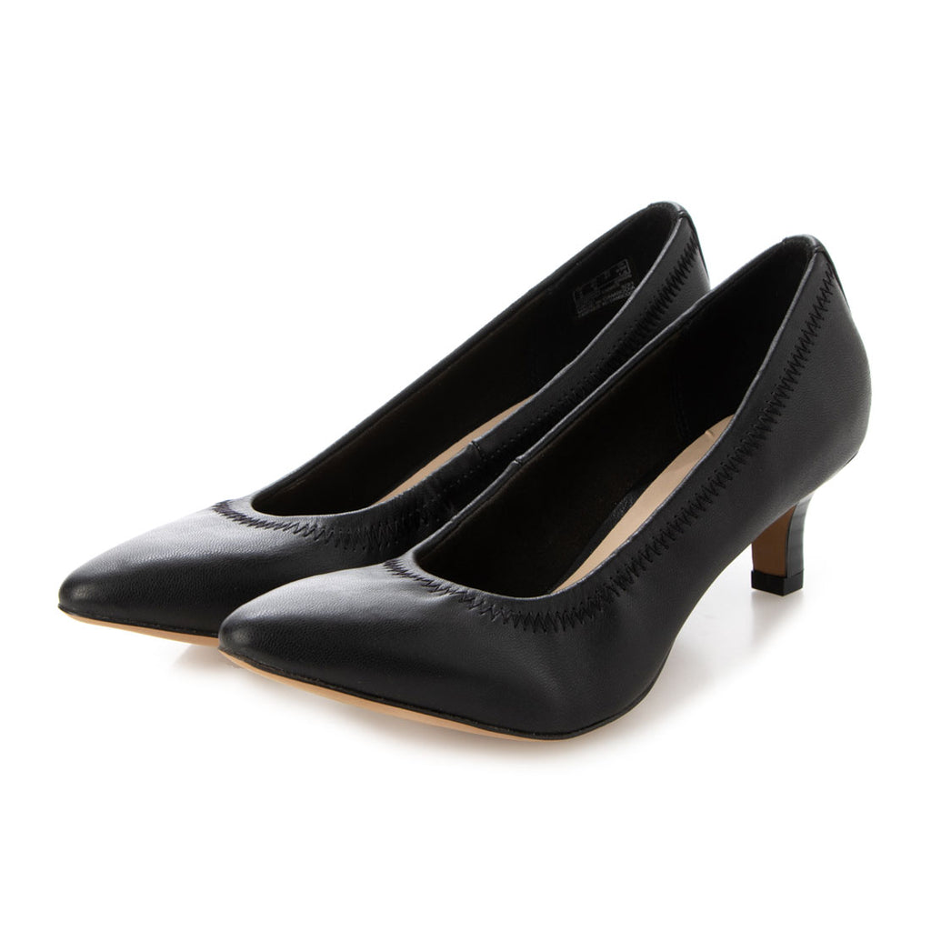 ブラックのフェイクレザーを使用したエレガントなドレスシューズ。