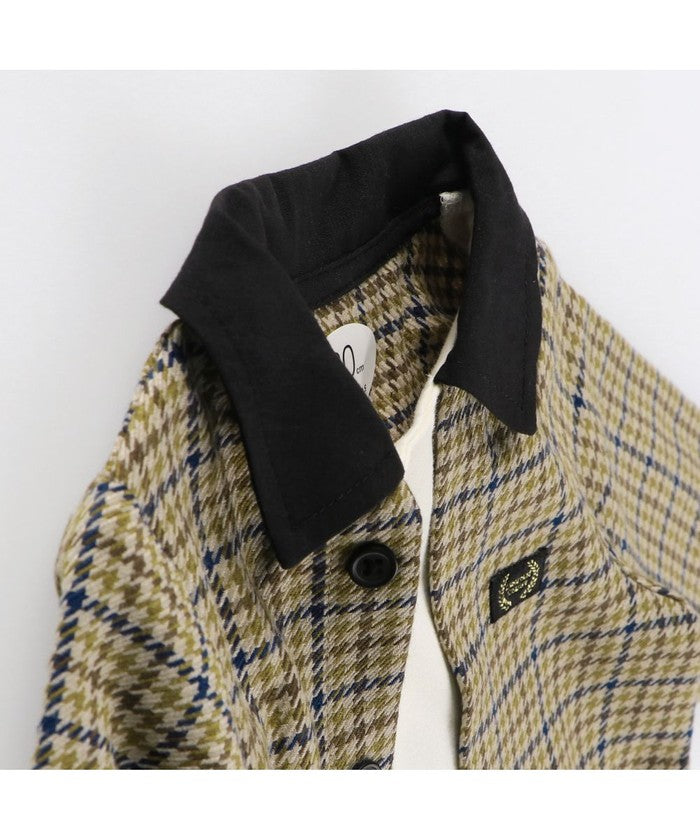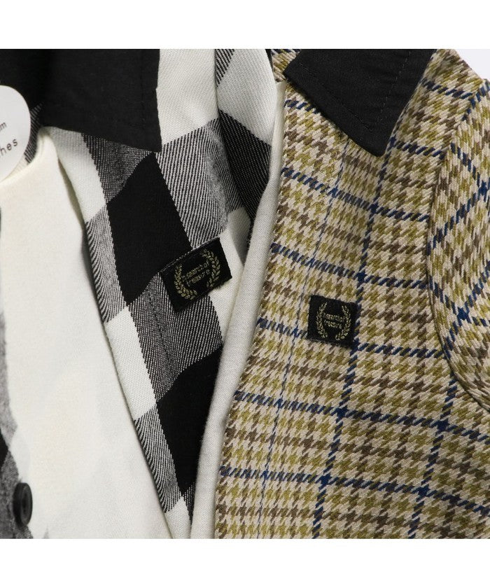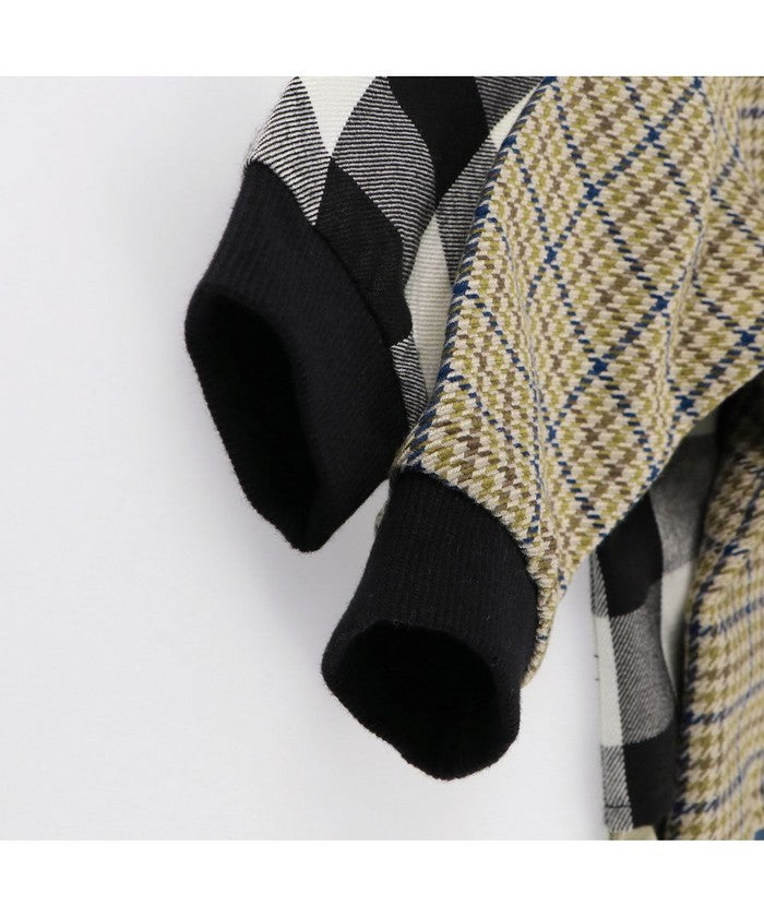 チェック部分:ポリエステル65% レーヨン35% 無地部分:綿100% 衿裏・後衿刳:ポリエステル80% 綿20% リブ部分:綿97% ポリウレタン3%
