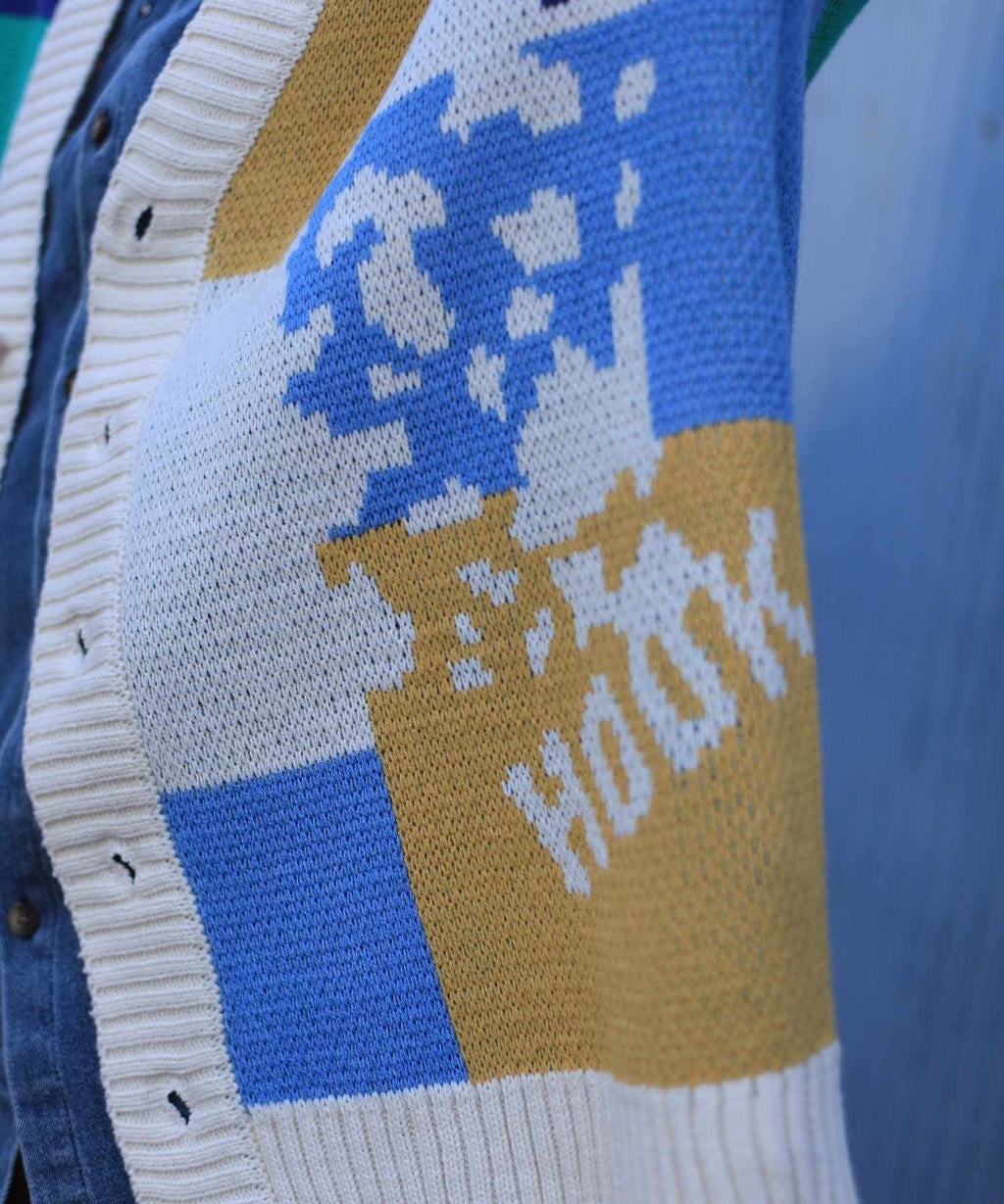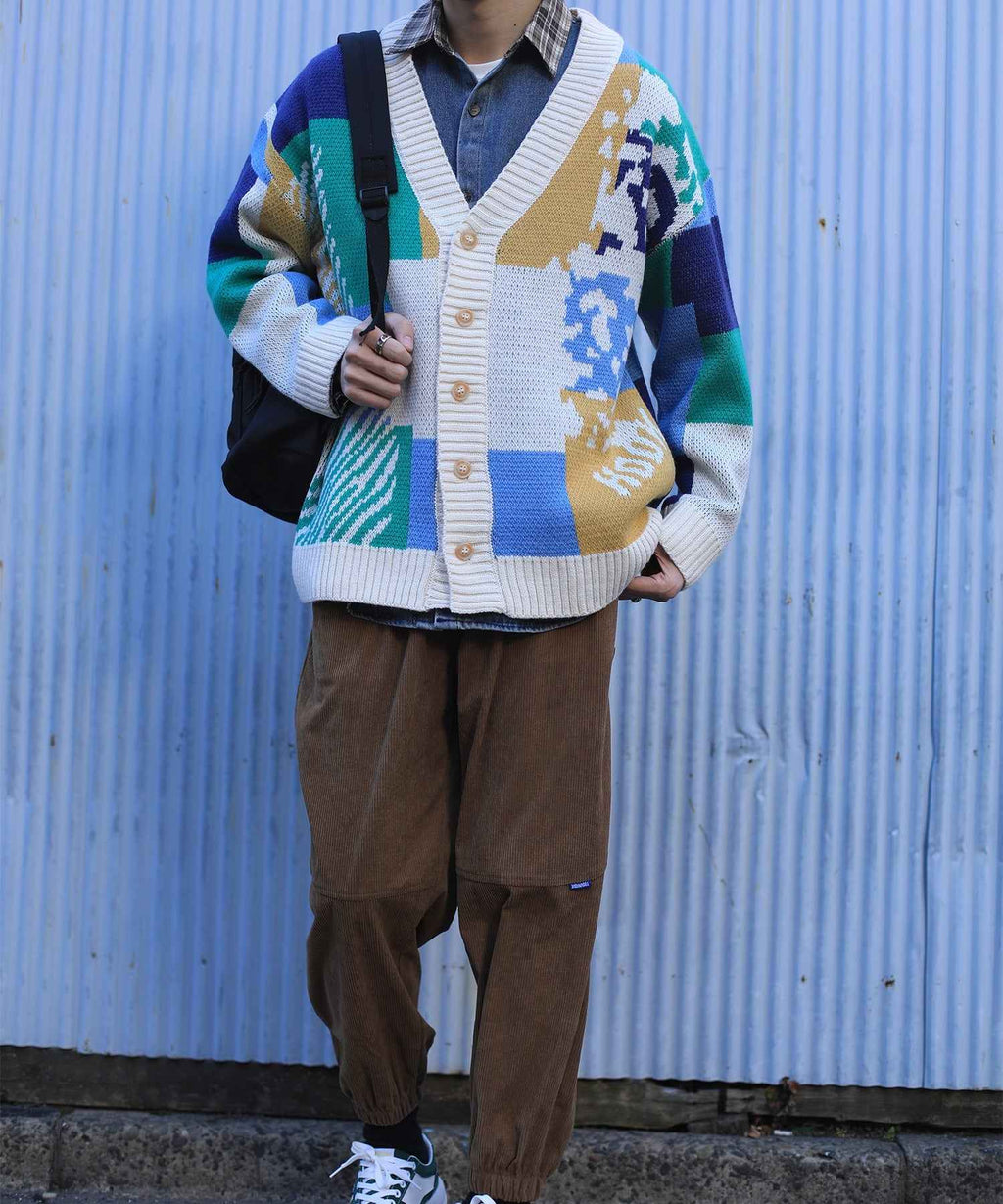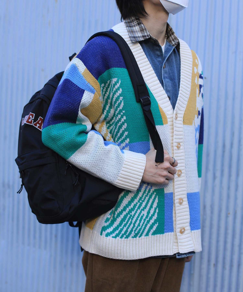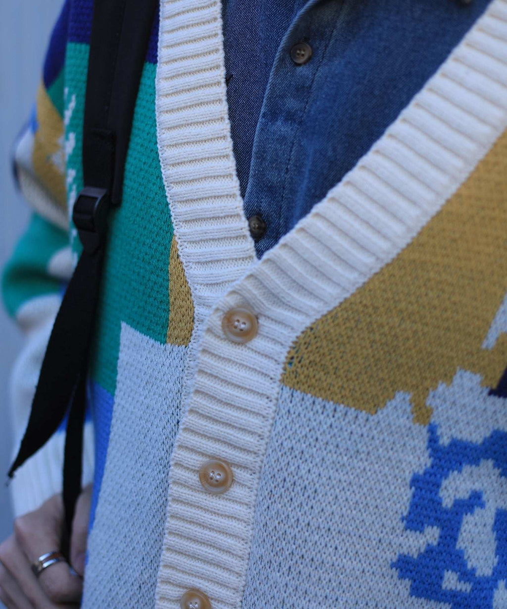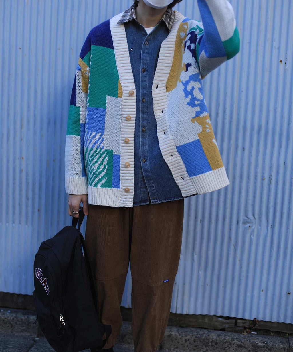 レトロ調のカラフルな色使いが視線を集めるアニマル柄ニットカーディガンが登場。