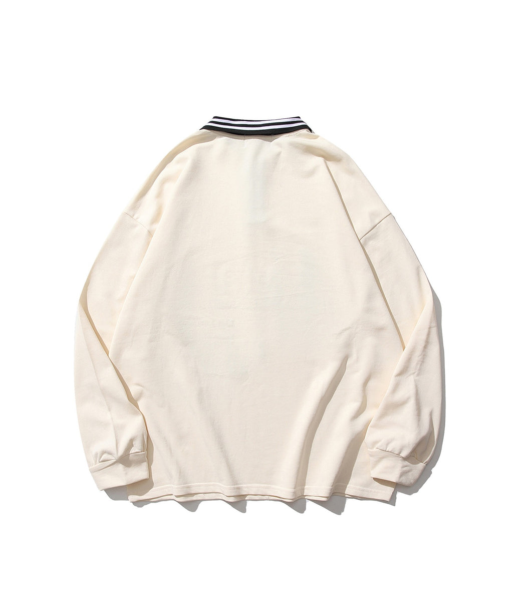 ストリートアイテムには欠かせない袖リブ、裾リブの付いたアメカジ、ワークテイストのlogoポロシャツ。