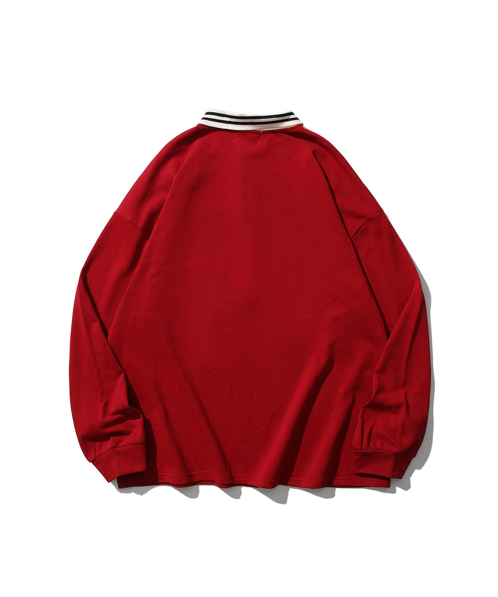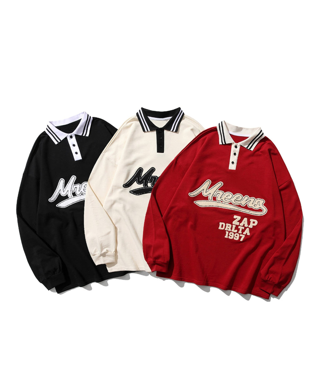 フック HOOK 新作!HOOKー アメカジロゴ刺繍ポロスウェット ストリート系