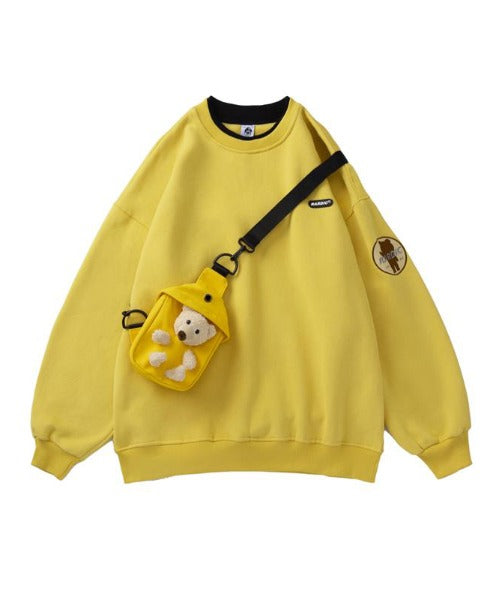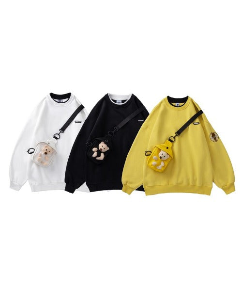 キュートなクマのショルダーバッグがついたオーバーサイズのトレーナー