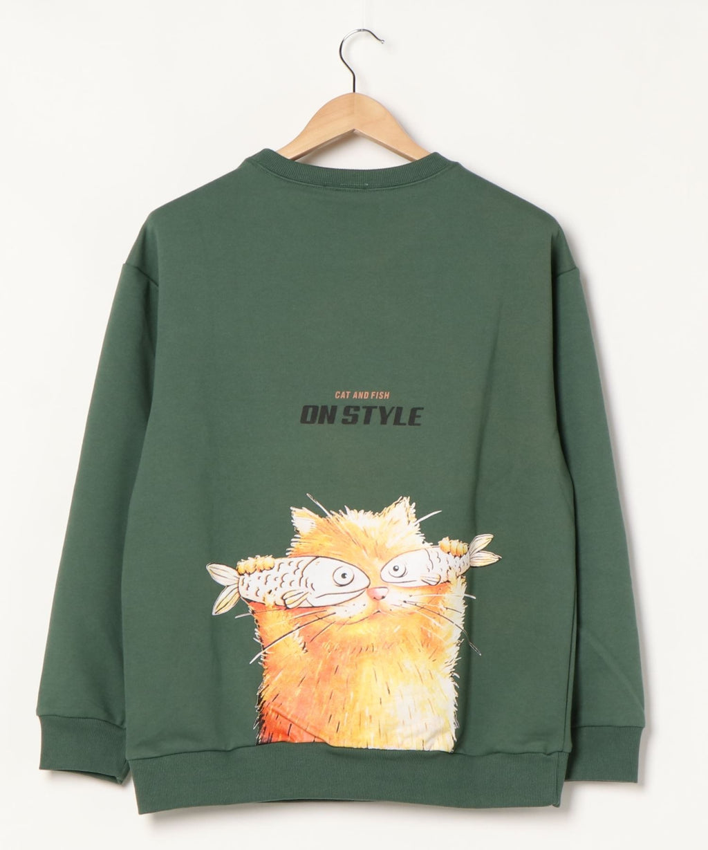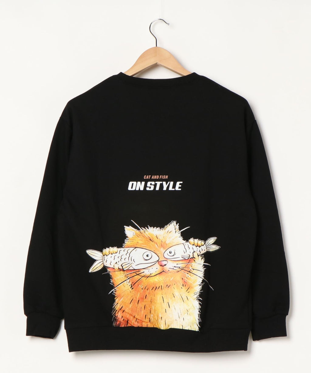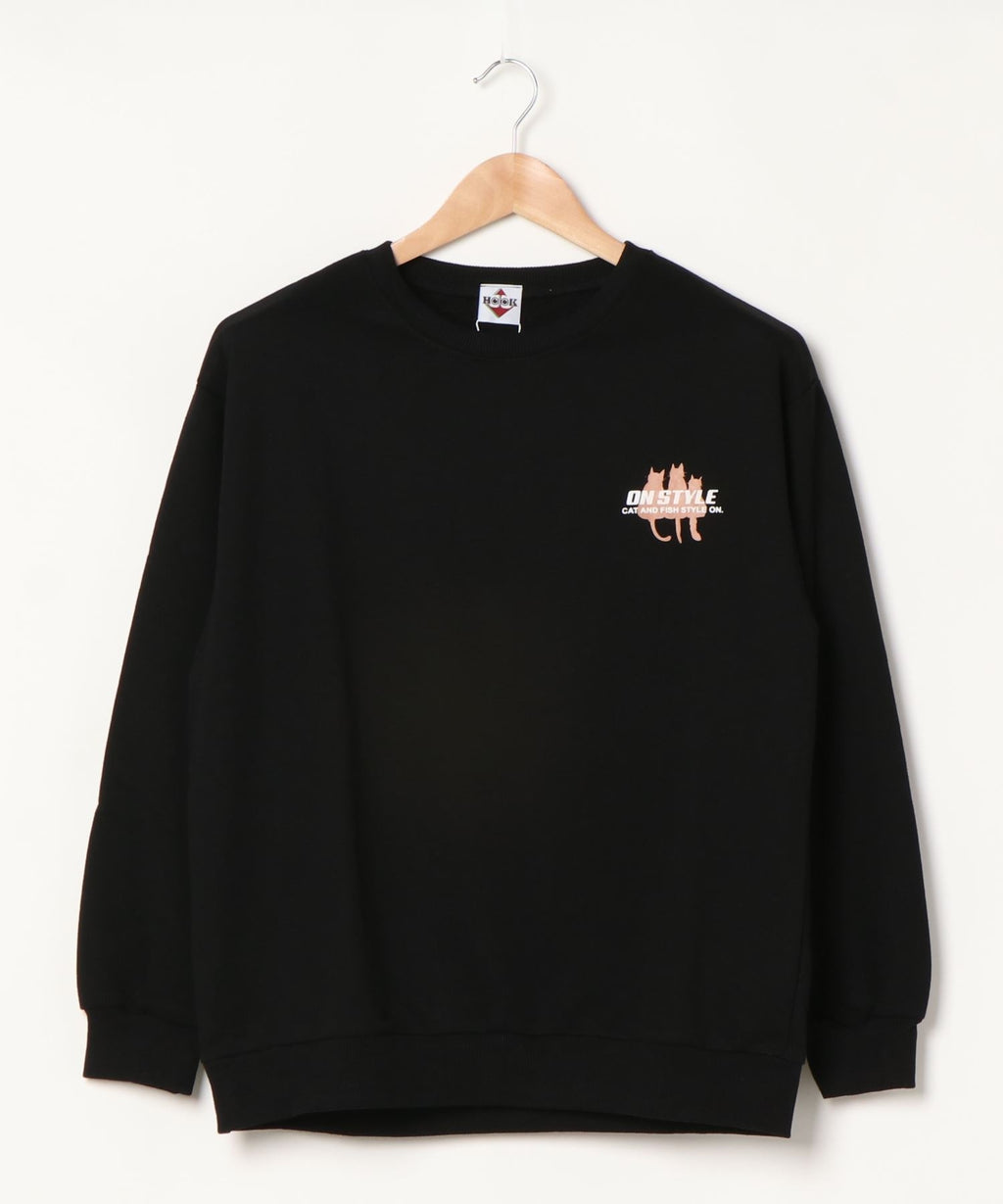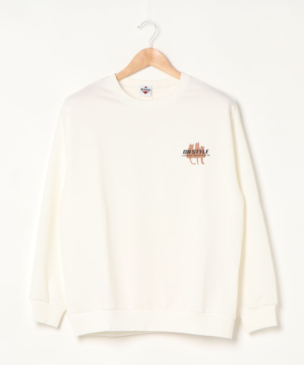フック HOOK 【HOOK】ユニセックス・ストリート/激カワ オリジナルプリント 長袖トレーナー 反射プリント 猫柄・マーガレット柄・ベア柄・スマイル