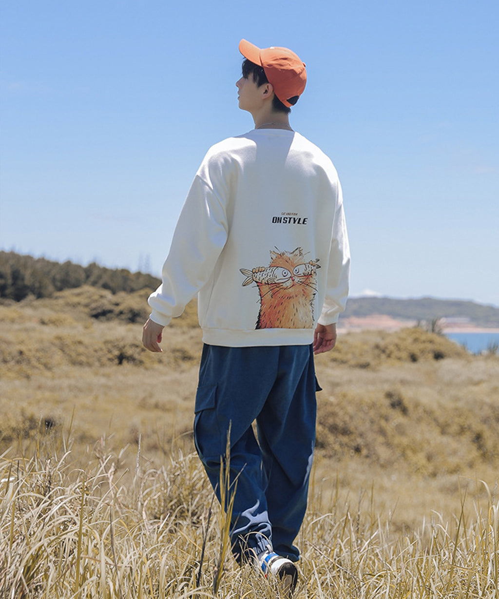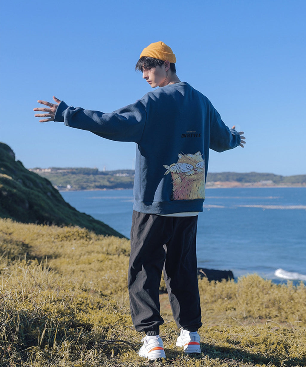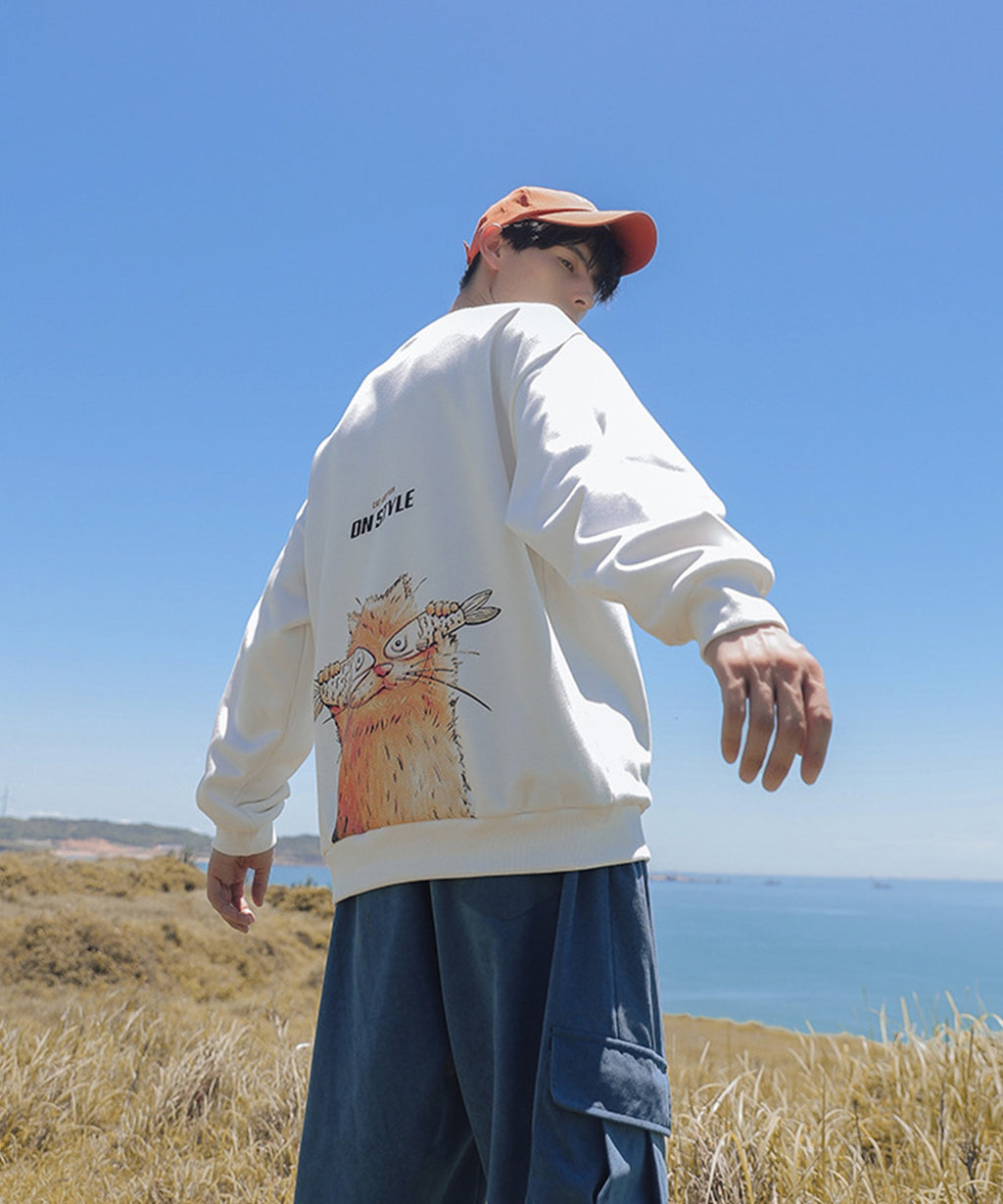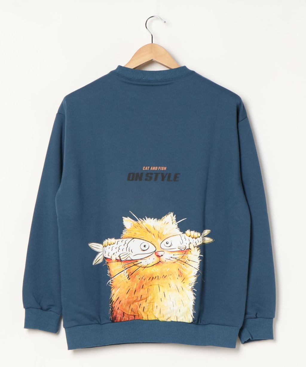 フック HOOK 【HOOK】ユニセックス・ストリート/激カワ オリジナルプリント 長袖トレーナー 反射プリント 猫柄・マーガレット柄・ベア柄・スマイル