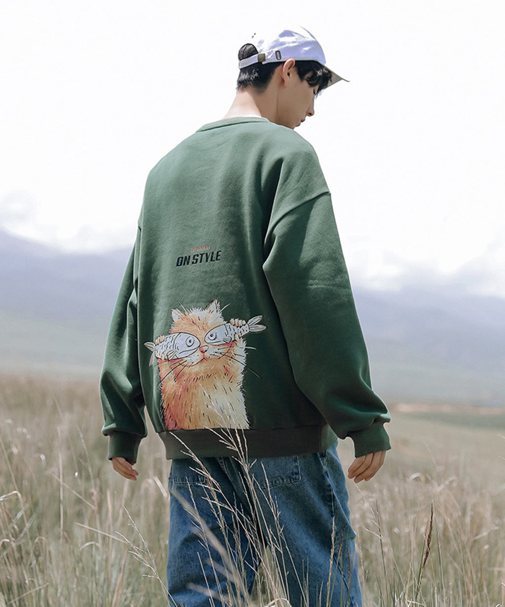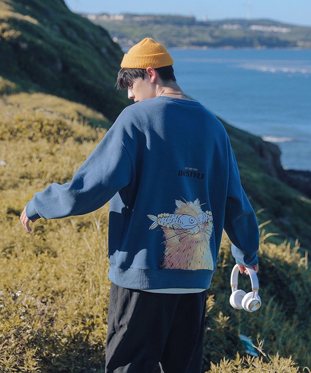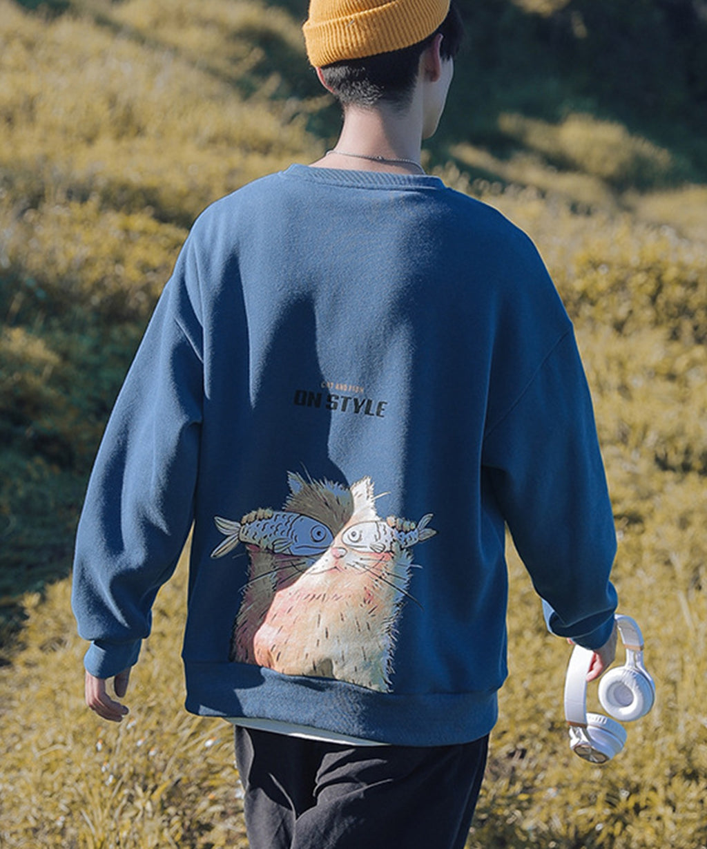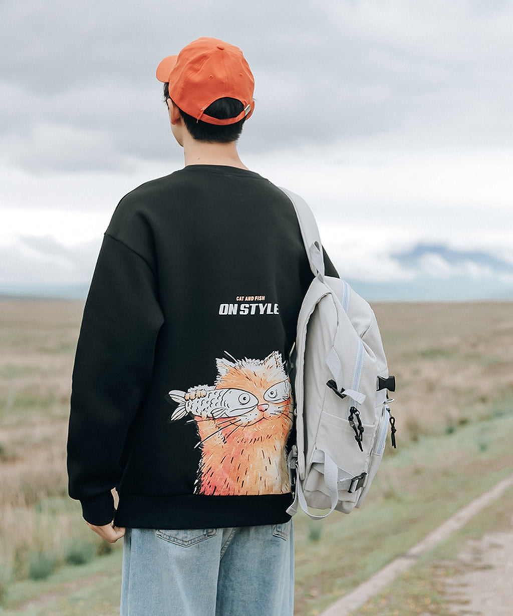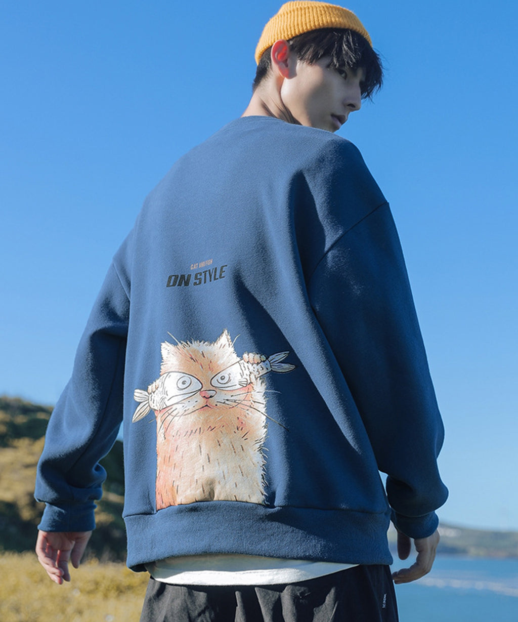 フック HOOK 【HOOK】ユニセックス・ストリート/激カワ オリジナルプリント 長袖トレーナー 反射プリント 猫柄・マーガレット柄・ベア柄・スマイル