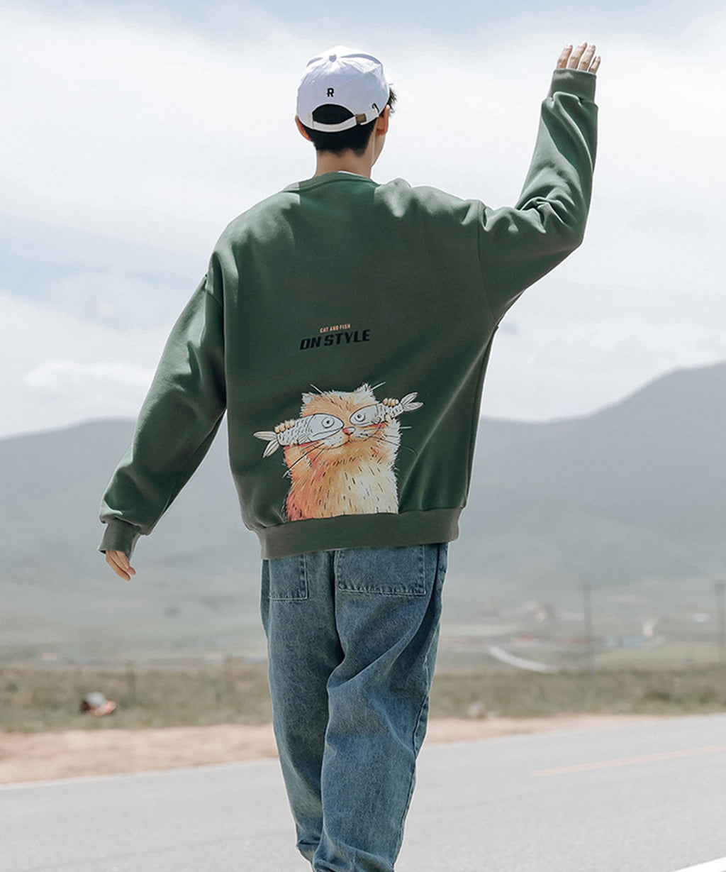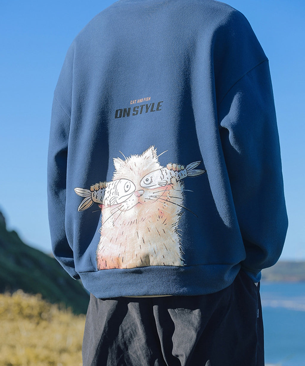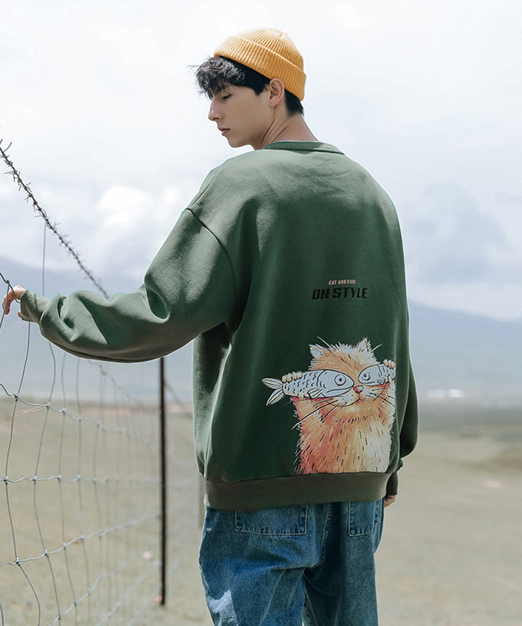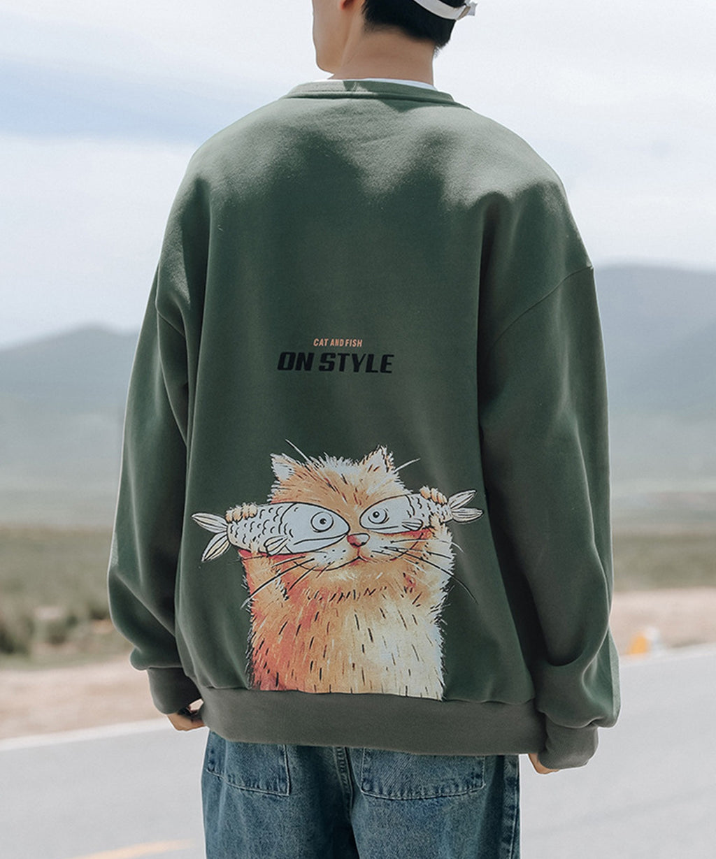 フック HOOK 【HOOK】ユニセックス・ストリート/激カワ オリジナルプリント 長袖トレーナー 反射プリント 猫柄・マーガレット柄・ベア柄・スマイル