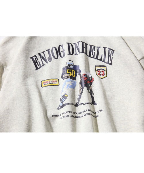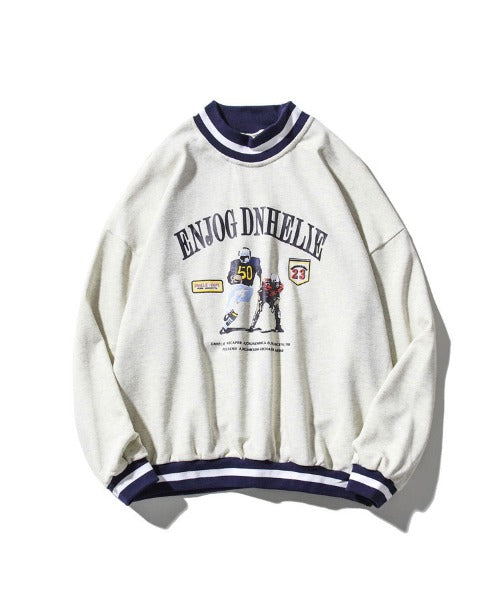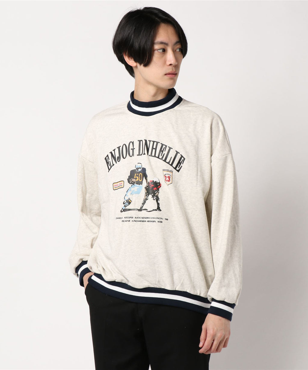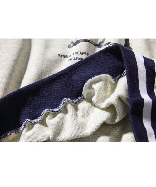 フック HOOK 【HOOK】アンティーク風プリント ボーダー柄リブ トレーナー
