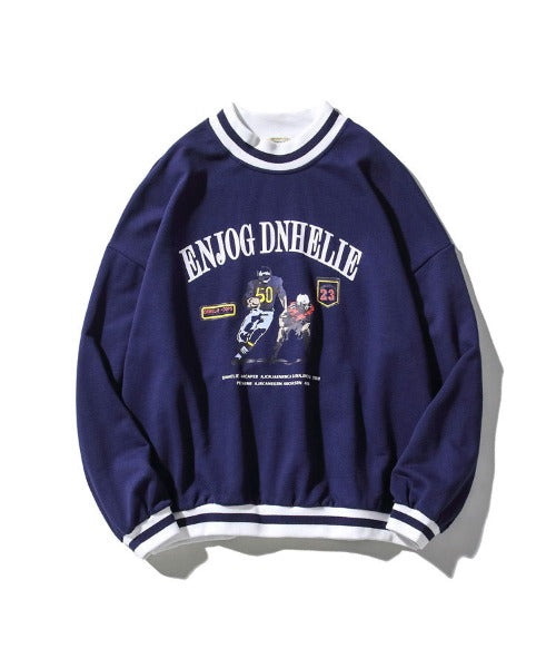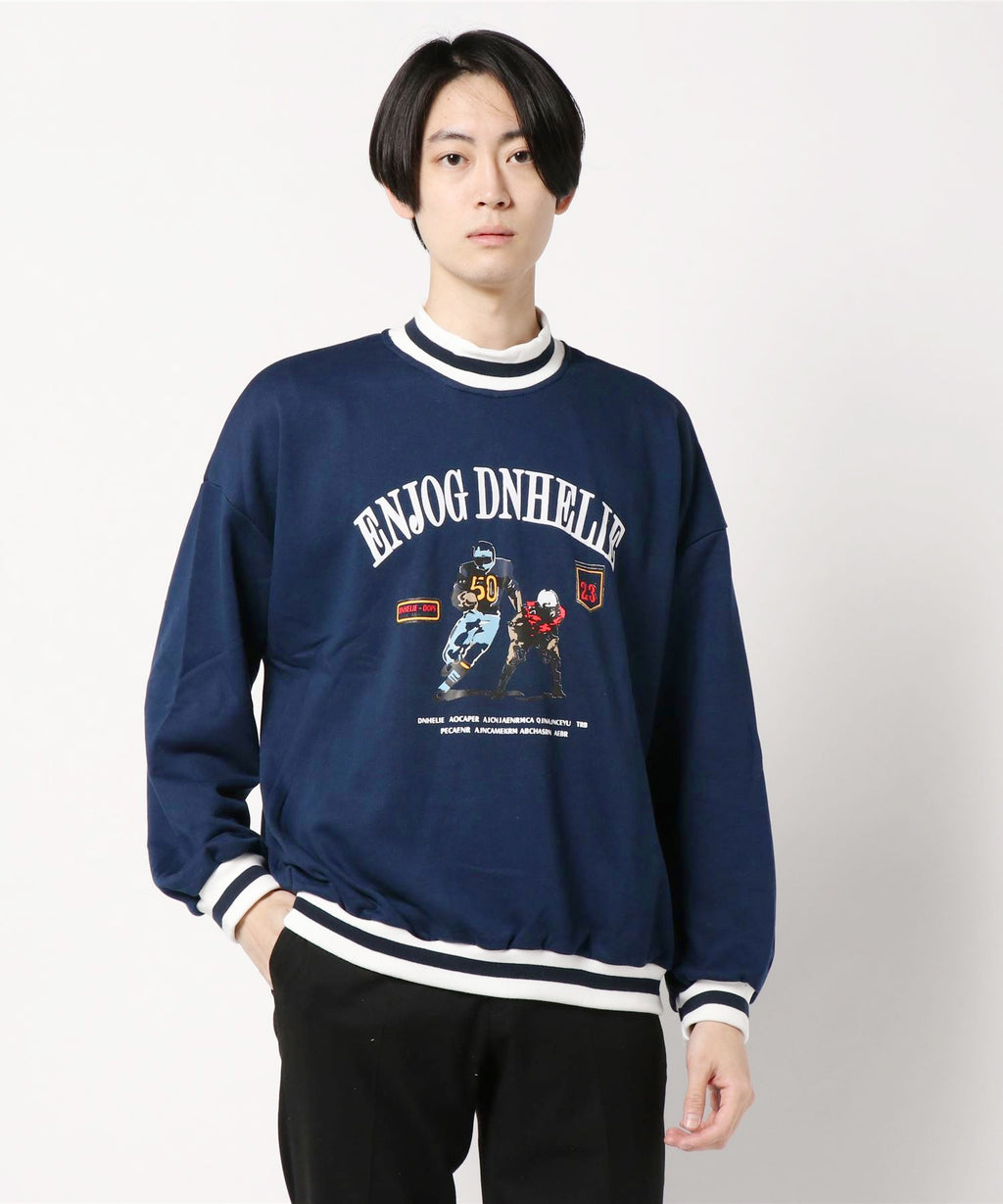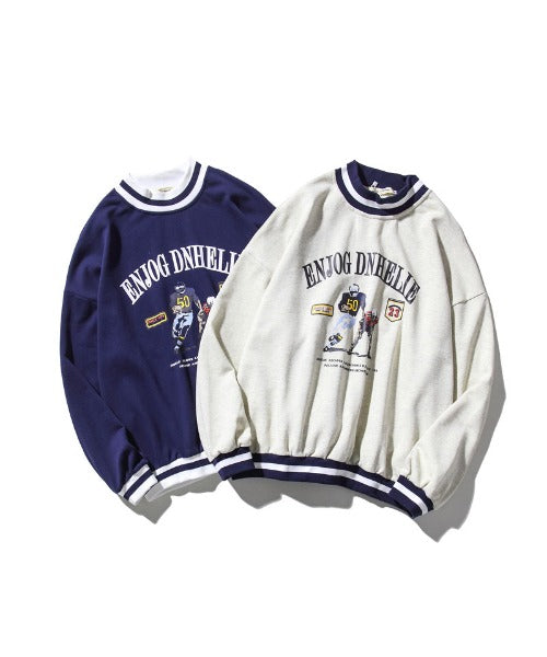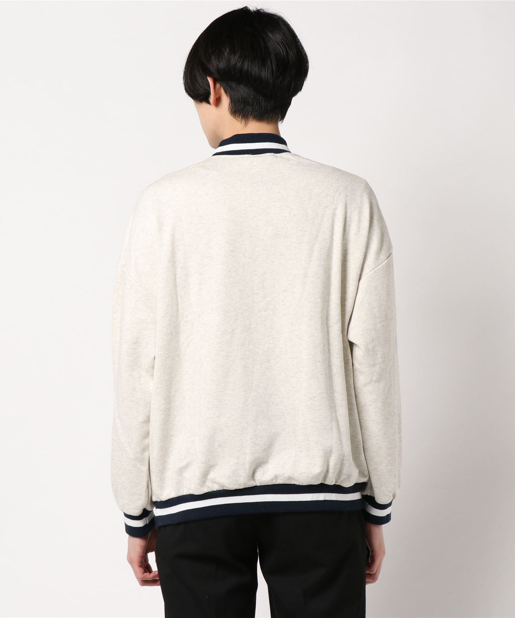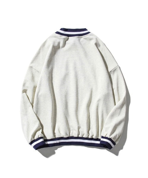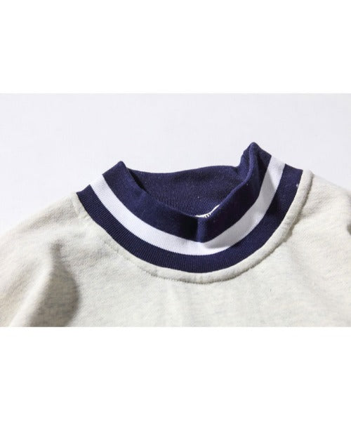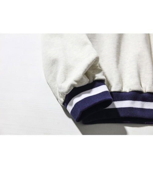 ボーダーリブを用いたクルーネックスウェットトレーナー。